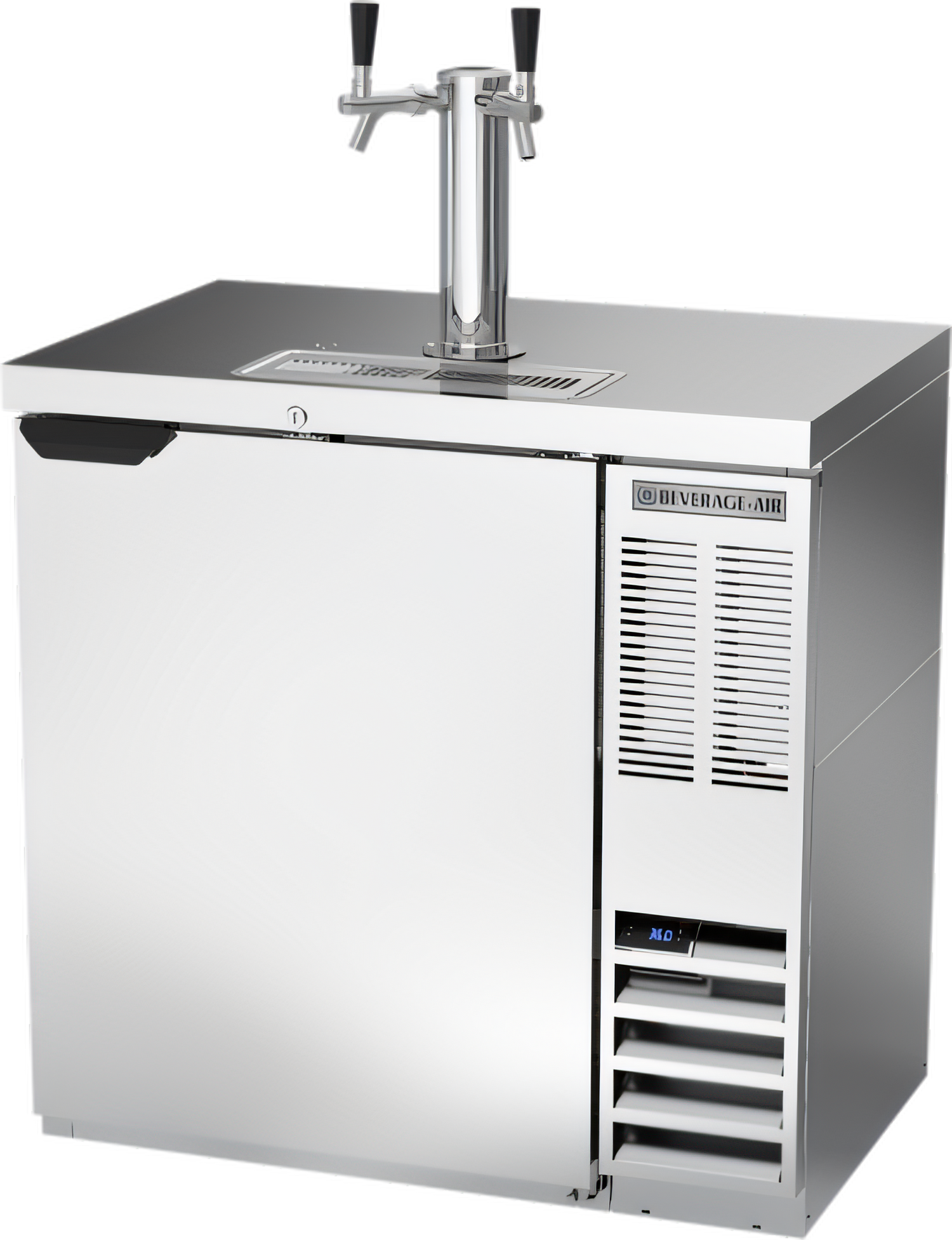 Draft Beer Cooler, 36"W, 51-1/4"H, 8.31 cu. ft., (1) door, (1) 1/2 keg capacity, door locks, one dual faucet column, stainless steel exterior, stainless steel top, galvanized interior with reinforced stainless steel floor, self-contained refrigeration, R290 Hydrocarbon refrigerant, 1/4 HP, cULus, UL EPH Classified, UL-Sanitation