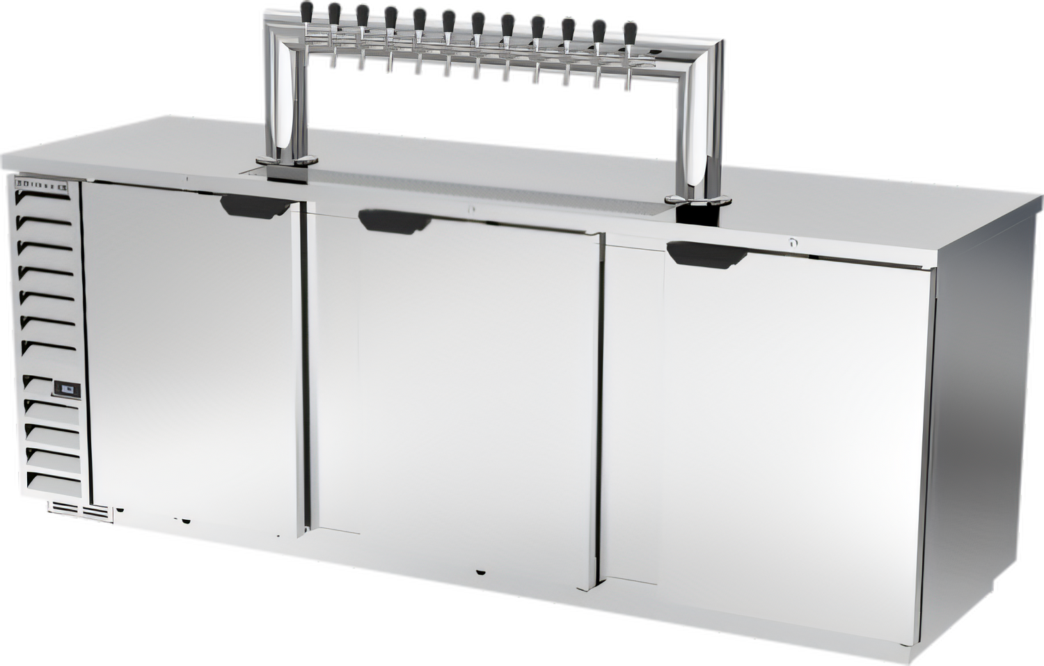 Draft Beer Cooler, 95"W, 29"D, 37.82 cu. ft., (3) doors, (5) keg capacity, door locks, (12) tap tower, stainless steel exterior & top, galvanized interior with reinforced stainless steel floor, self-contained refrigeration, R290 Hydrocarbon refrigerant, 1/3 HP, cULus, UL EPH Classified, UL-Sanitation