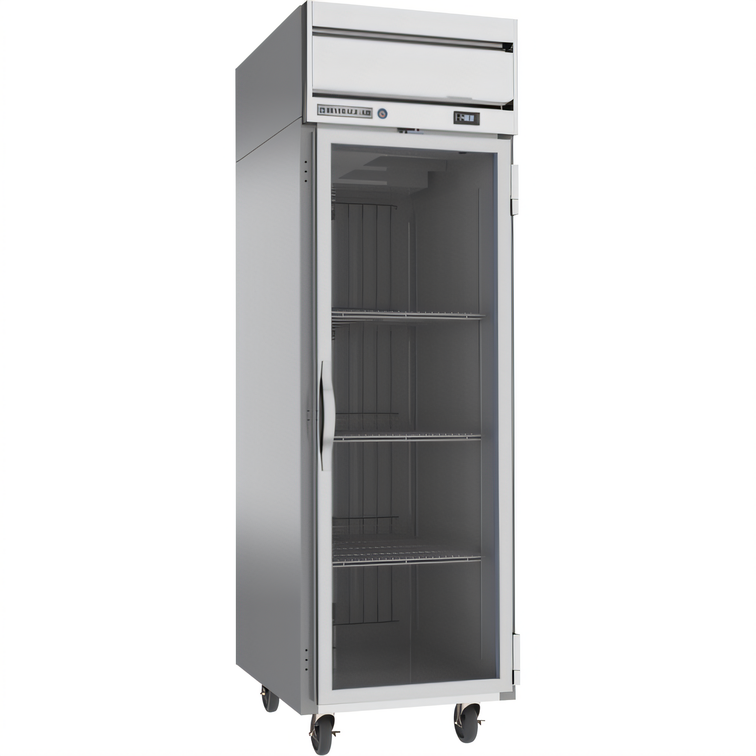 Horizon Series Freezer, reach-in, one-section, 21.06 cu. ft., (1) right-hand hinged glass door, (3) adjustable shelves, electronic control, LED interior lighting, digital display, expansion valve technology, automatic defrost, top-mounted self-contained refrigeration, stainless steel front, gray painted sides, aluminum interior, R290 Hydrocarbon refrigerant, 3/4 HP, cULus, UL EPH Classified, UL-Sanitation