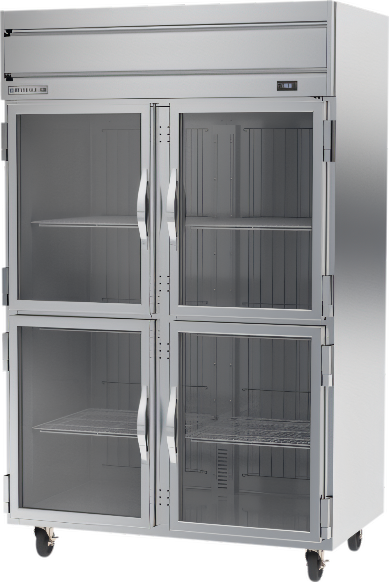 Horizon Series Freezer, reach-in, two-section, 46.29 cu. ft., (2) right-hand hinged half glass doors, (2) left-hand hinged half glass doors, (6) adjustable shelves, electronic control, LED interior lighting, digital display, expansion valve technology, automatic defrost, top-mounted self-contained refrigeration, stainless steel front & sides, aluminum interior, (2) 3/4 HP, cULus, UL EPH Classified, UL-Sanitation