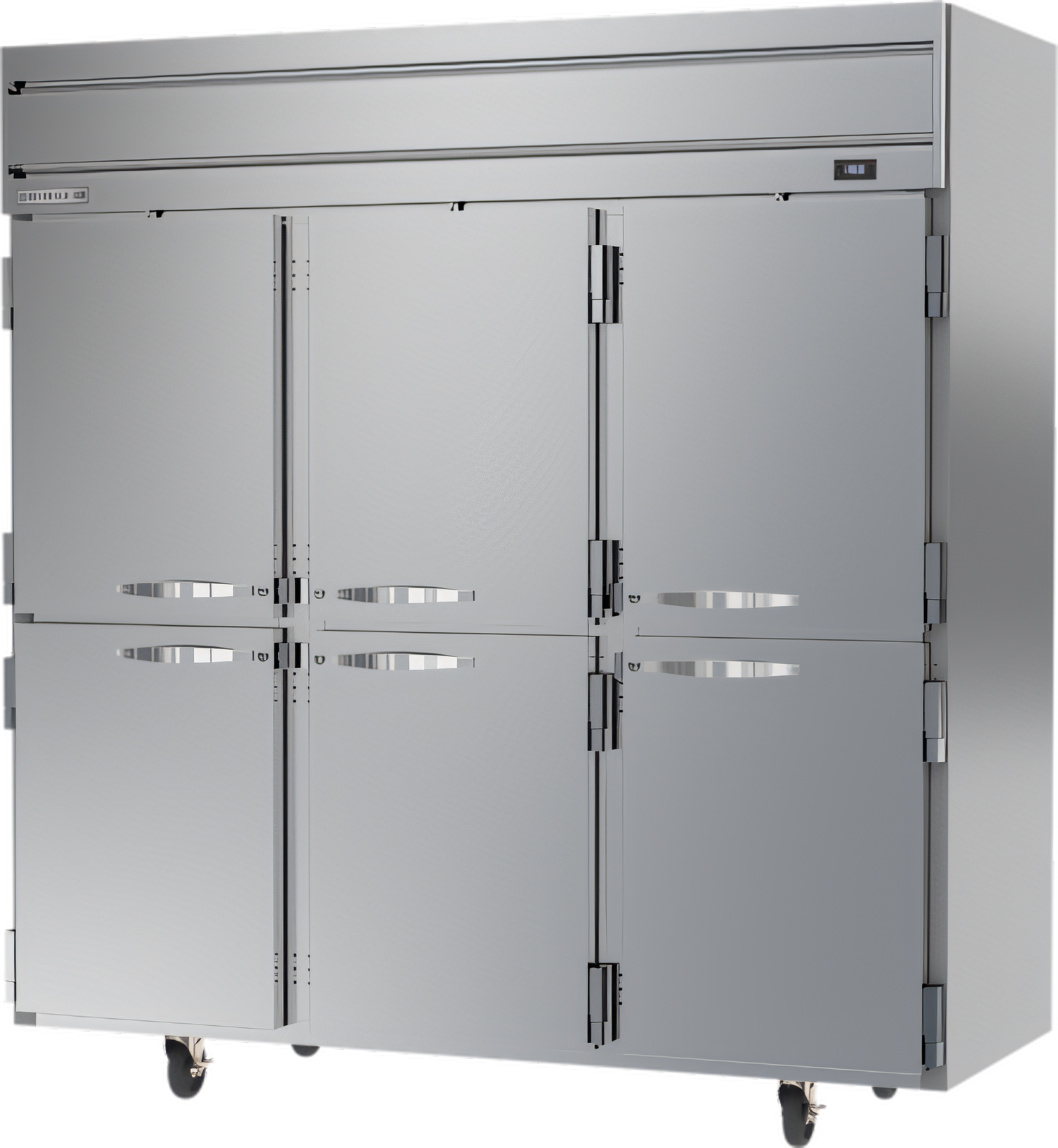 Horizon Series Freezer, reach-in, three-section, 69.1 cu. ft., (2) center half solid doors right-hand hinged, (2) right half solid doors right-hand hinged, (2) left half solid doors left-hand hinged, door locks, (9) adjustable shelves, electronic control, LED interior lighting, digital display, expansion valve technology, automatic defrost, top-mounted self-contained refrigeration, stainless steel front, gray painted sides, stainless steel interior, (2) 3/4 HP, cULus, UL EPH Classified, UL-Sanitation