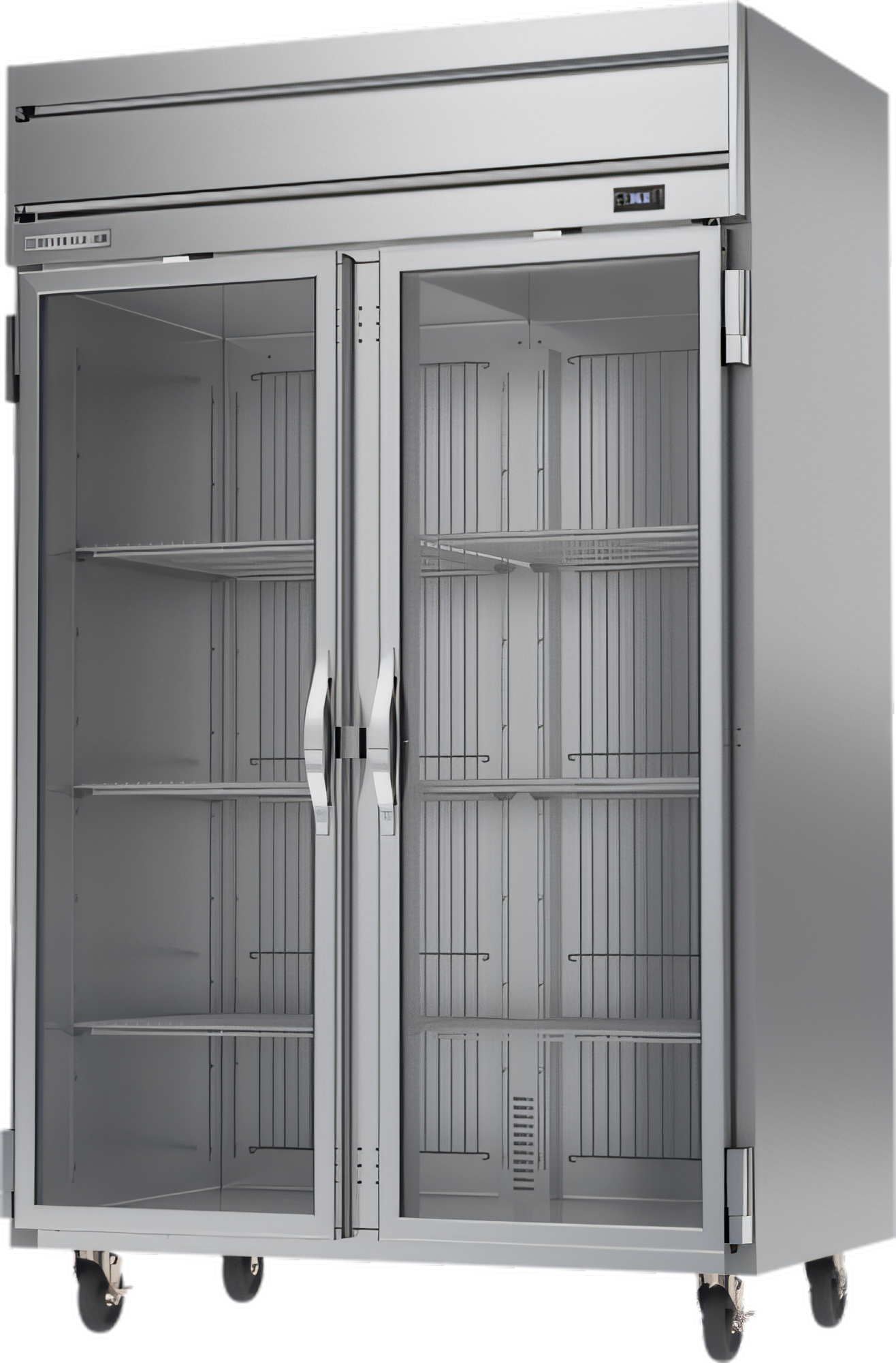 Horizon Series Refrigerator, reach-in, two-section, 46.88 cu. ft., (1) right-hand hinged glass door, (1) left-hand hinged glass door, (6) shelves, electronic control, LED interior lighting, digital display, stainless steel front, gray painted sides, stainless steel interior, top-mounted self-contained refrigeration, Variable Speed Technology, cULus, UL EPH Classified, UL-Sanitation