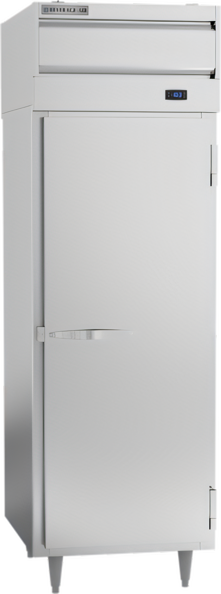 Freezer, Pass-Thru, one-section, 22.9 cu. ft., top-mounted self-contained refrigeration, (2) solid full height doors, (3) adjustable shelves, interior LED lighting, aluminum interior, stainless steel exterior, standard depth cabinet, half-height doors, exterior digital thermometer, 6" legs, 3/4 HP, cULus, UL EPH Classified, UL-Sanitation