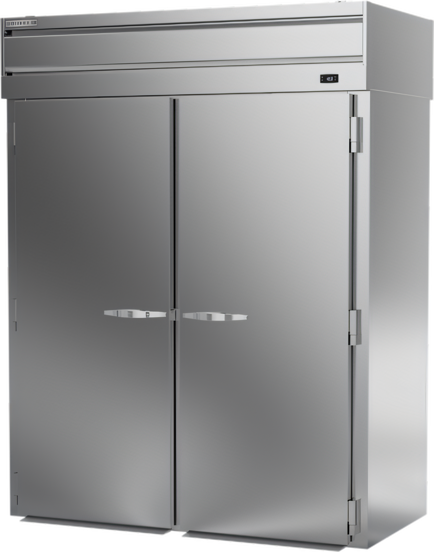 P-Series Freezer, Extra Tall, Roll-Thru, two-section, top mount self-contained refrigeration, 85.8 cu. ft. capacity, stainless exterior & interior, standard depth cabinet, (4) locking full height 22 gauge stainless steel doors, electronic temperature control/indicator, LED lighting, stainless steel exterior, stainless steel ramp, (2) 3/4 HP, cULus, UL EPH Classified, UL-Sanitation