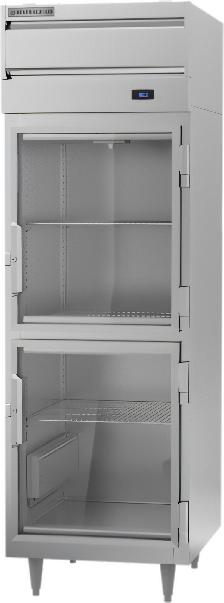 Beverage Air PH1-1BHG P Series Heated Cabinet — 21.5 cu. ft. reach-in warming cabinet with (2) half-height glass doors, cylinder lock and aluminum interior. Features a top-mounted heating system, exterior digital thermometer, three silver freeze shelves, stainless steel front and sides, and durable galvanized top, back and bottom. cULus certified for reliable food holding in restaurants, catering and commercial kitchens.
