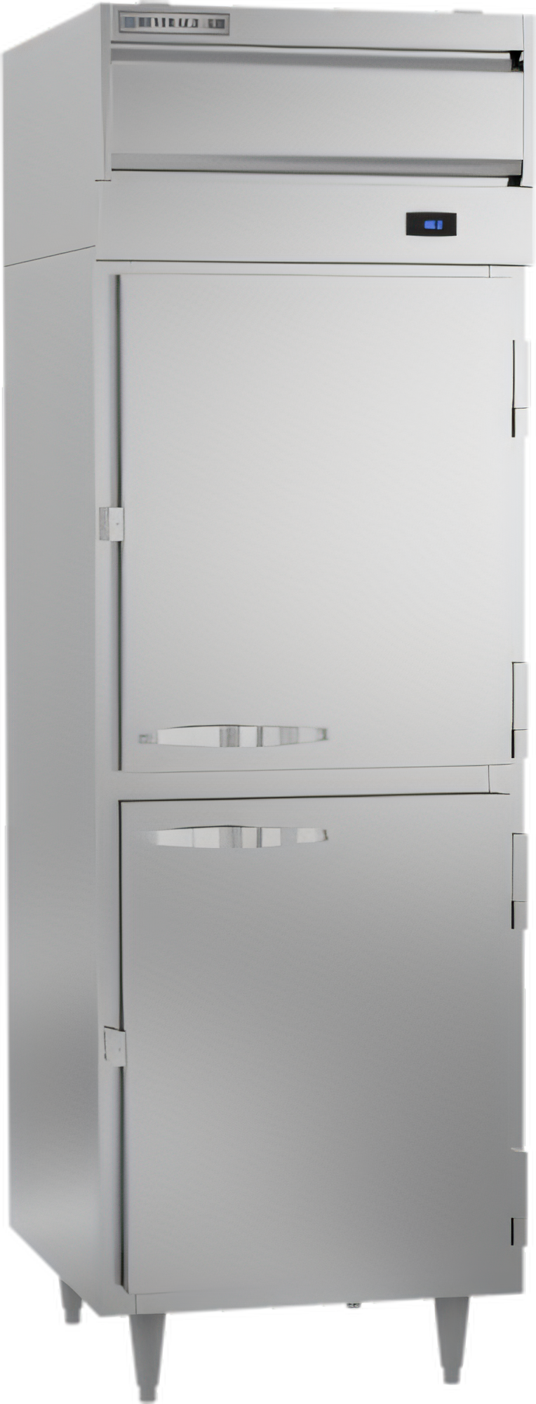 Beverage Air PH1-1HS P Series Heated Cabinet – 21.01 cu ft reach-in warming cabinet with two half-height doors, top-mounted heating system and exterior digital thermometer for precise temperature control. Durable stainless steel front and sides, aluminum interior, galvanized top/back/bottom, three silver freeze shelves and cylinder lock make it ideal for hot-holding in busy commercial kitchens. UL and UL EPH listed for safety and reliability.