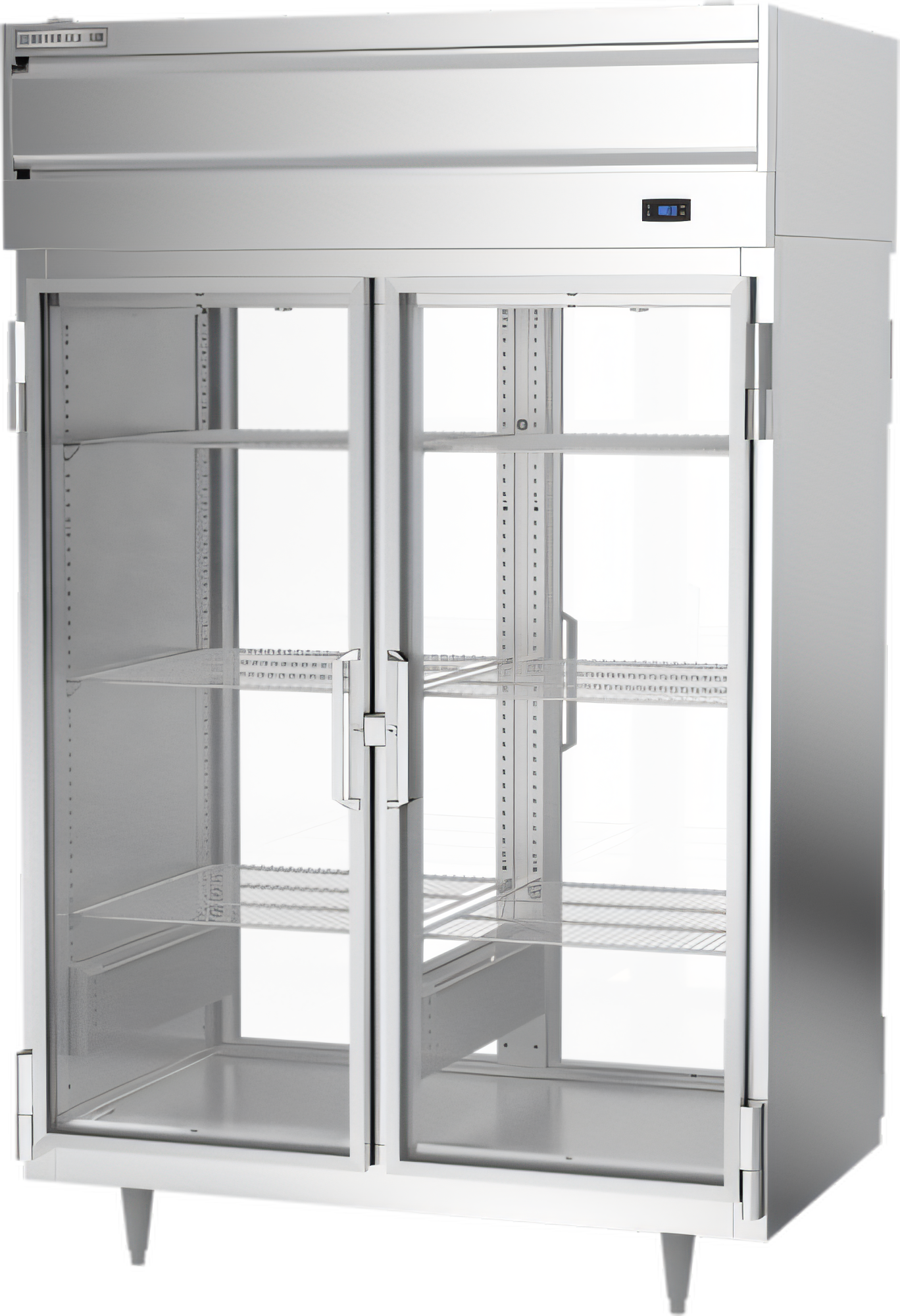 Beverage Air PH2-1BG-PT P Series Heated Cabinet — durable 46.5 cu. ft. pass-thru warming cabinet with top-mounted heating, aluminum interior and stainless steel front & sides. Features two sections with four full-height doors, cylinder lock, (6) adjustable silver shelves, exterior digital thermometer, 13-amp operation, and cULus/UL EPH classification for reliable holding and transport in busy commercial kitchens. Ideal for restaurants, catering, and foodservice operations.