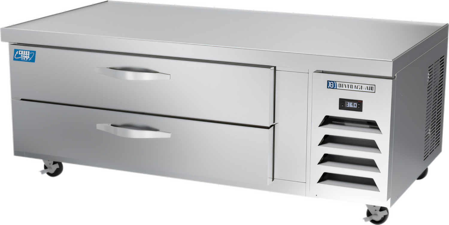 Cross Temp Chef Base, one-section, 60"W, 8.7 cu. ft., temperature range of -15 to 40°F, (2) drawers, top drawer holds (3) 12" x 20" x 6" pans per drawer & bottom drawer holds (3) 12" x 20" x 6" pans per drawer (NOT included), digital display, fire-proof stainless steel top, front & sides (no heat shield required), full marine drip guard, aluminum interior, self-contained refrigeration, R290 Hydrocarbon refrigerant, 4/5 HP, cULus, UL EPH Classified, UL-Sanitation