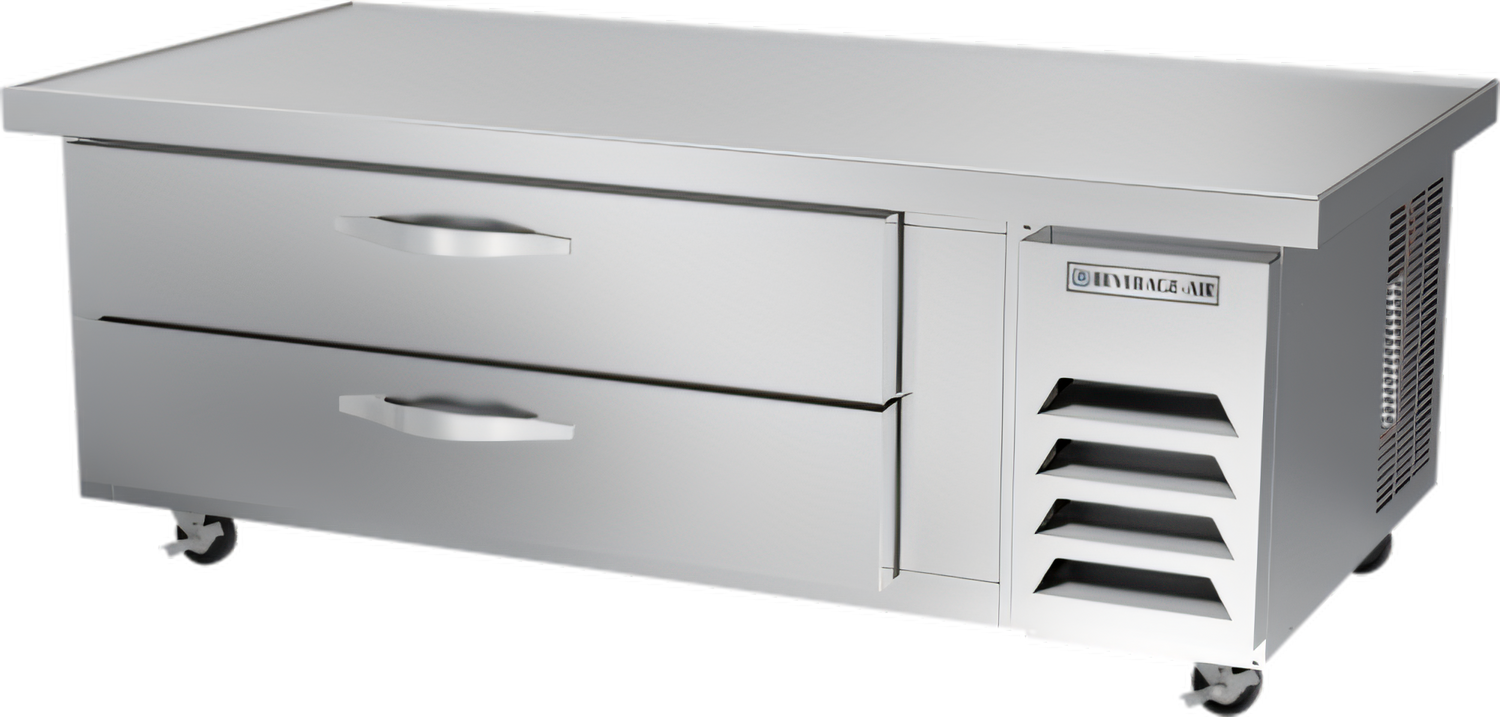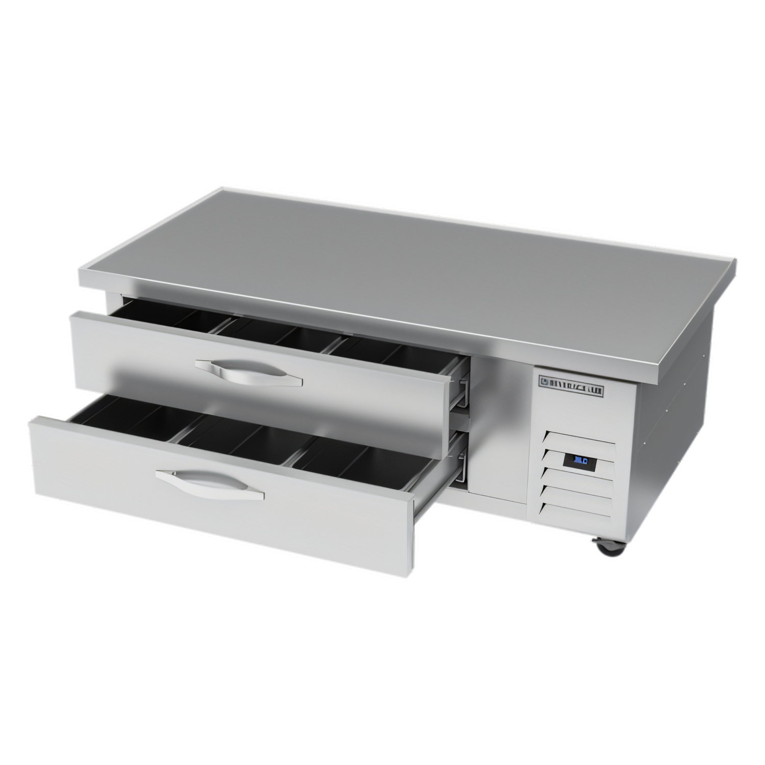 Worktop Cook Stand Refrigerator, one-section, 64"W, 11.55 cu. ft., (2) drawers, top drawer holds (3) 12" x 20" x 6" pans per drawer & bottom drawer holds (3) 12" x 20" x 6" pans per drawer (NOT included), fire-proof stainless steel top, front & sides (no heat shield required), full marine drip guard, aluminum interior, side-mounted self-contained refrigeration, R290 Hydrocarbon refrigerant, 1/6 HP, cULus, UL EPH Classified, UL-Sanitation