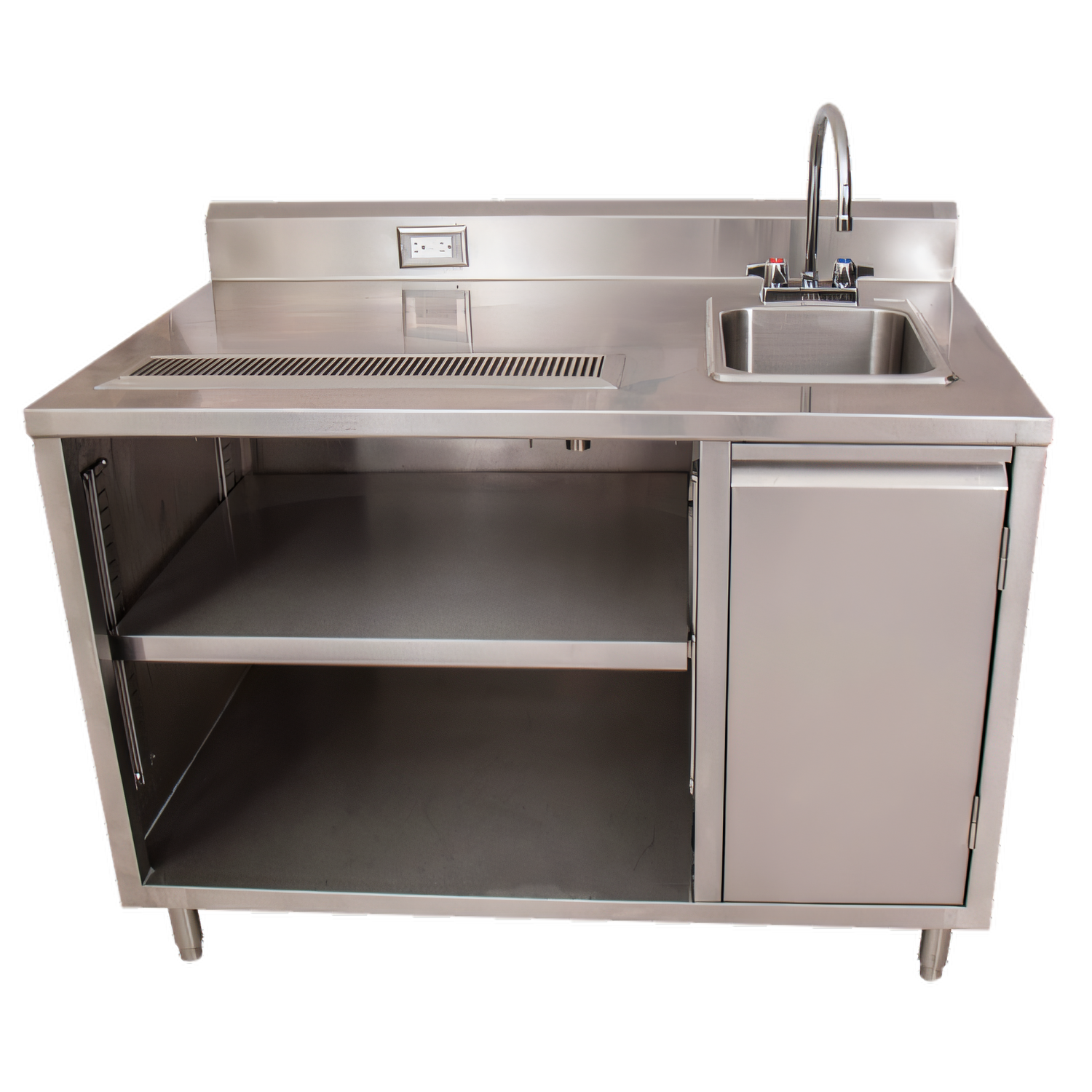 - 5" riser backsplash with a built-in standard electric outlet for brewers, grinders, and blenders