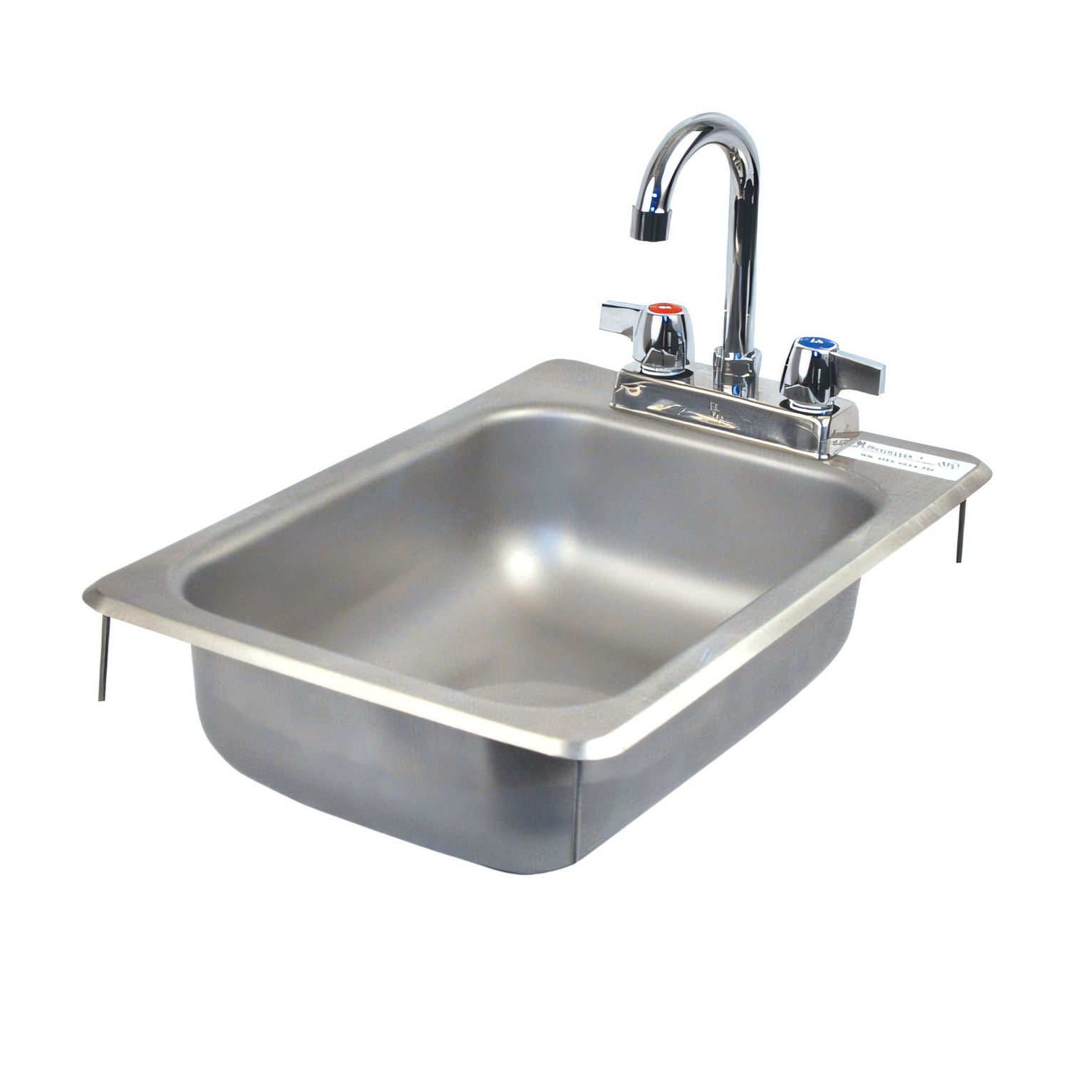 Drop-In Sink, one compartment, 12-1/8"W x 18-1/2"D x 5"H overall size, (1) 10" wide x 14" front-to-back x 5" deep compartment, includes deck mount faucet (BKD-5G-G) & basket drain (BKDR-4), 304 stainless steel construction, 11-1/2" x 17-7/8" cutout required, lead free, NSF