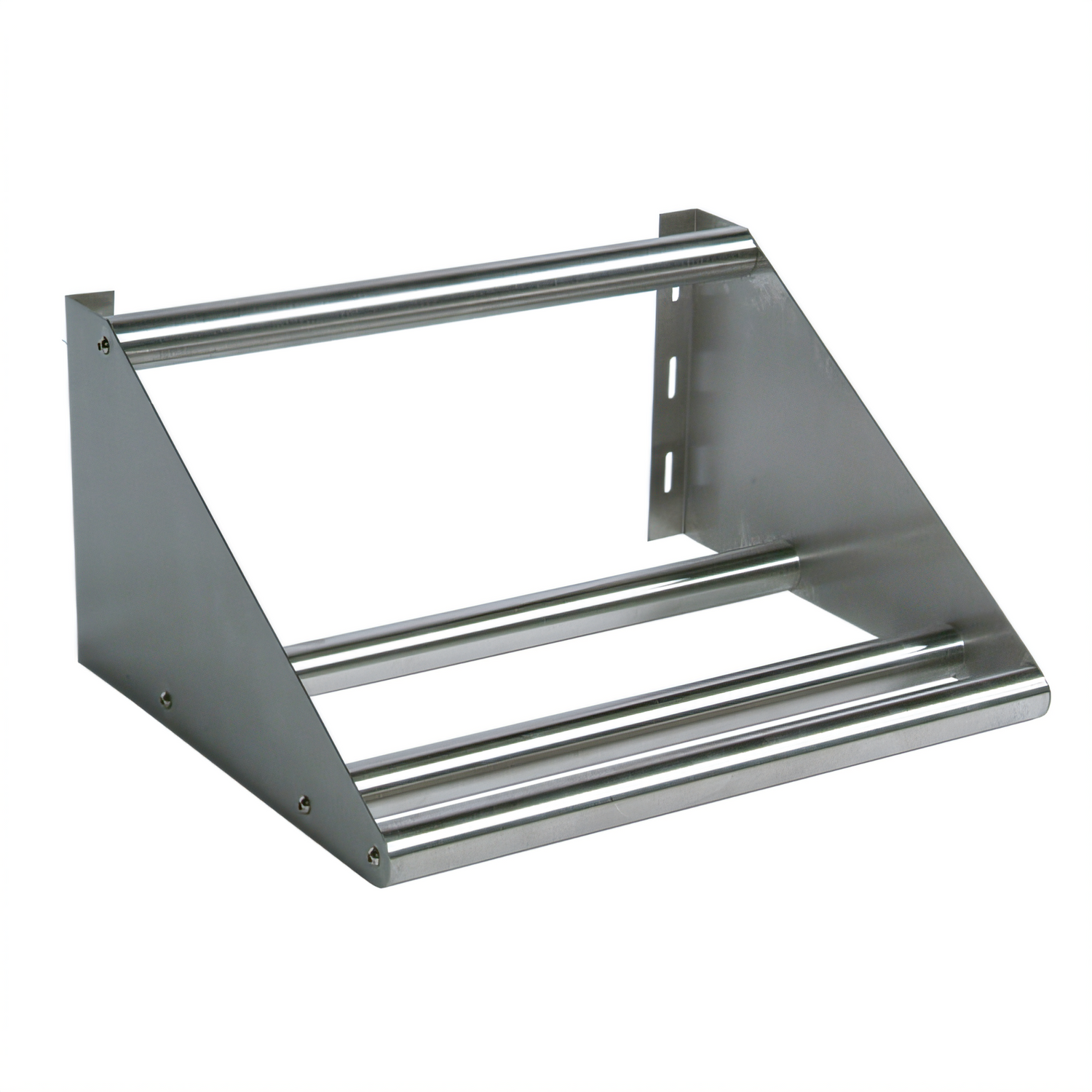 Tubular Dish Shelf, wall mount, 42"W, slotted mounting holes, 1-5/8" O.D. tubing, 11-1/4"H angle supports, 18/304 stainless steel construction, NSF