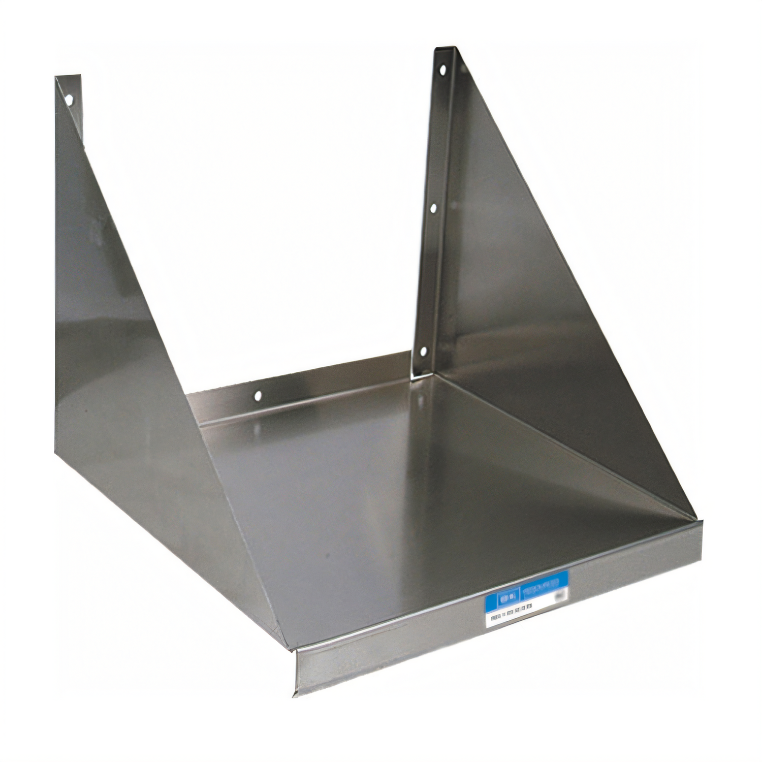 Microwave Shelf, wall mount, 24"W x 18"D x 16-3/8"H, 18/304 stainless steel, 1-1/2" mounting back lip, 15" angle supports, solid base, mounting template included, NSF