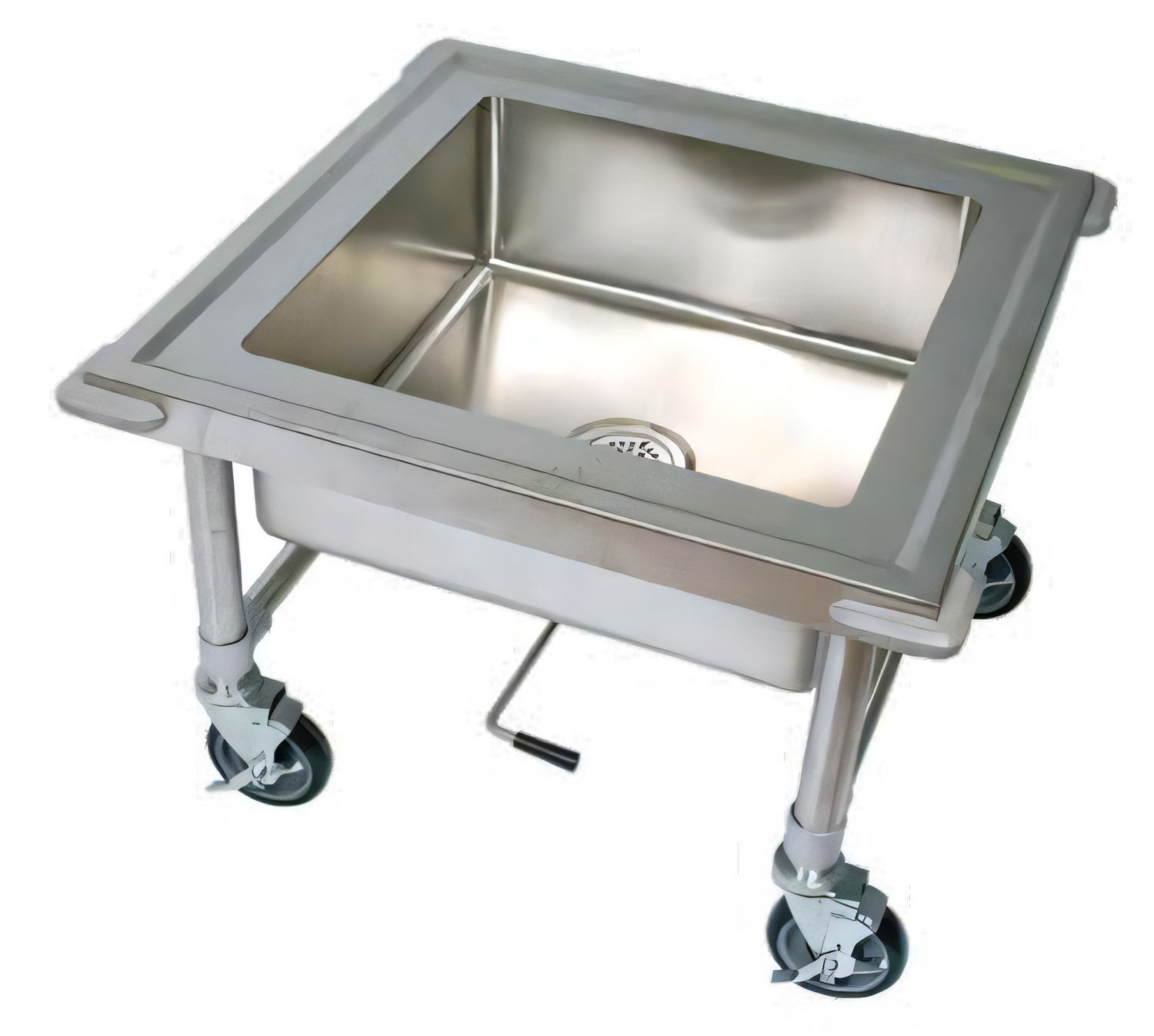 Soak Sink, mobile, 26-7/8"W x 26-7/8"D x 20-7/8"H overall size, 20" wide x 20" front-to-back x 8" deep bowl, 20" working height, marine edge & corner bumpers, twist lever drain with 3-1/2" opening, 16/304 stainless steel construction, stainless steel gussets, legs, & cross bracing, 5" polyurethane casters (with top lock brake)