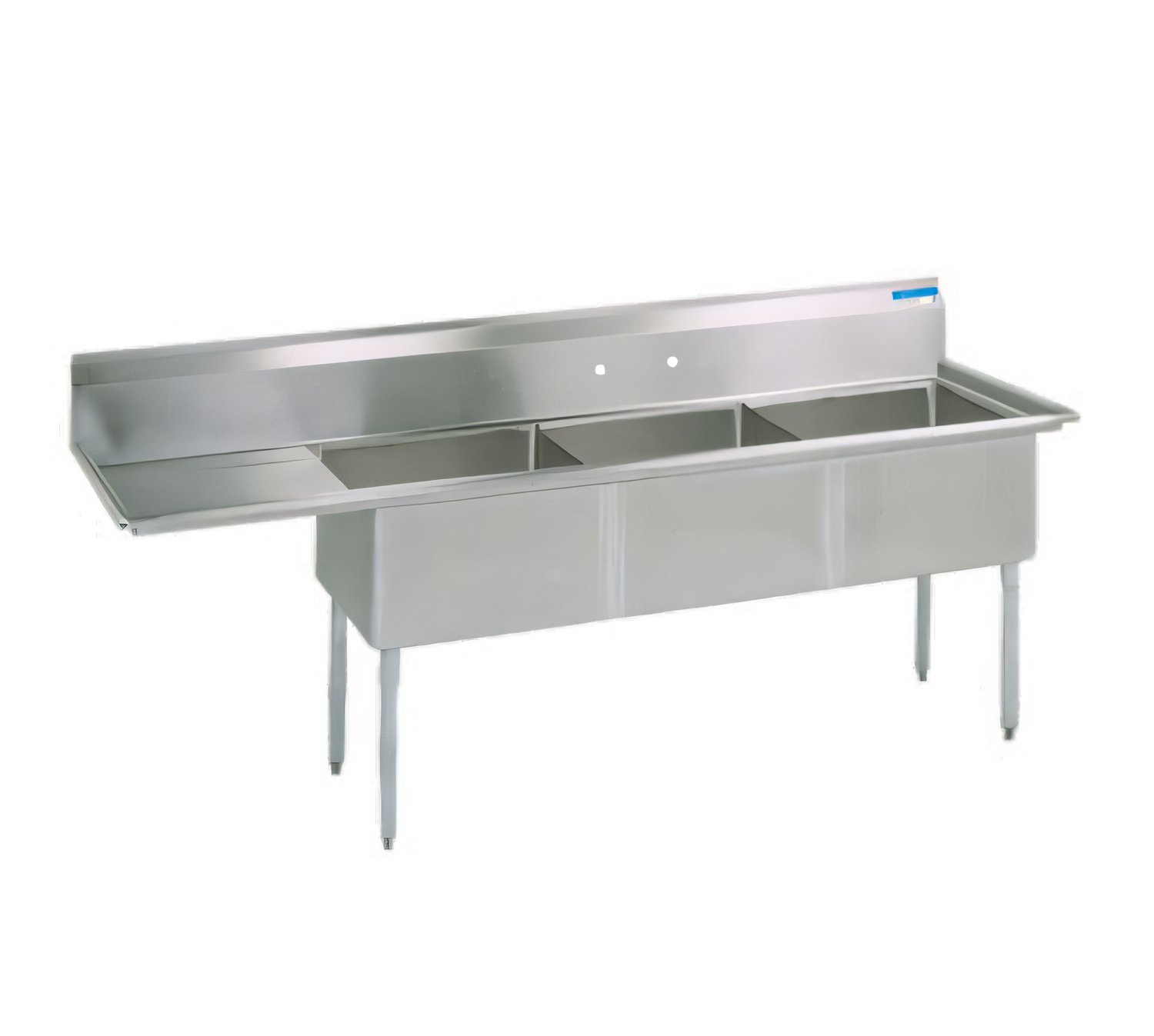 BK Resources 68-1/2" Three-Compartment Sink with Left-Hand Drainboard