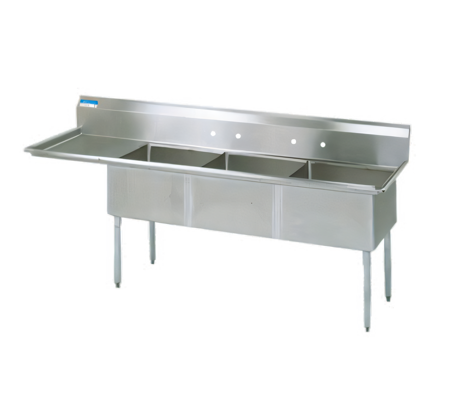 BK Resources 98-1/2" Three-Compartment Sink w/ 24" Left Drainboard
