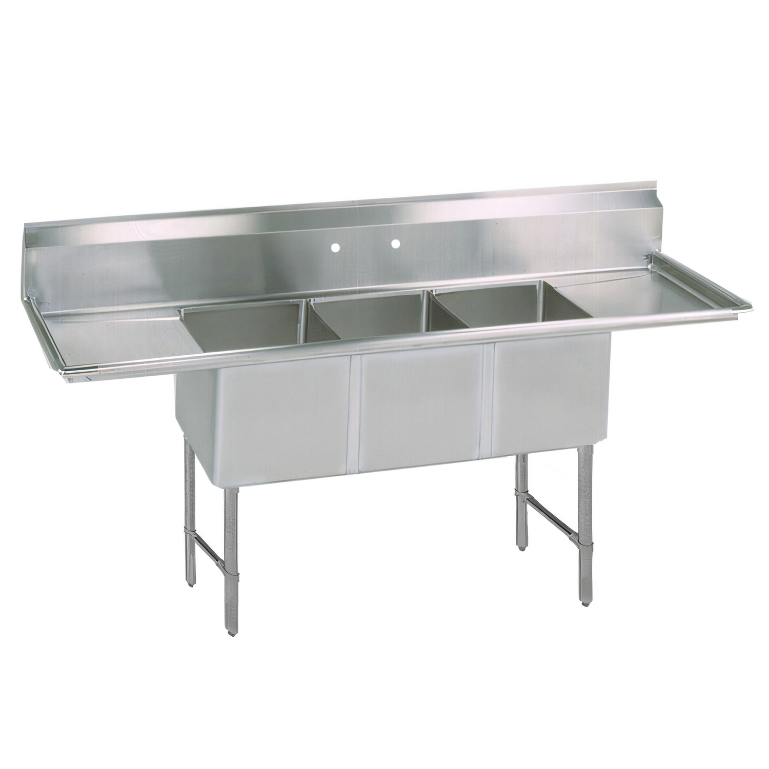 BK Resources BKS6-3-1824-14-18TS Three-Compartment Sink with Double 18" Drainboards