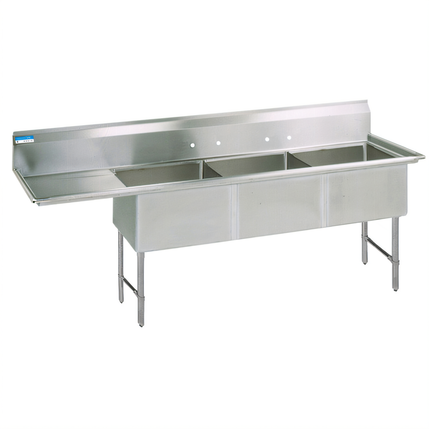 BK Resources 3-Compartment Sink with 24" Left Drainboard