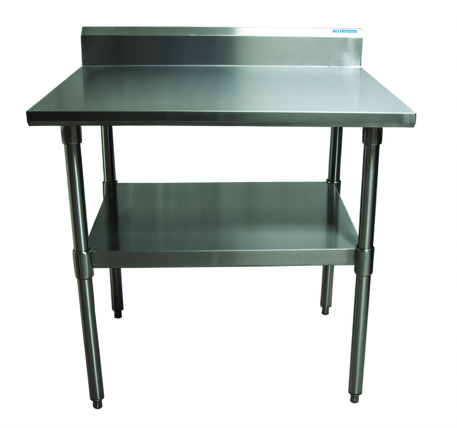 Work Table, 30"W x 30"D x 34-3/4"H overall size, 16/304 stainless steel top with 5"H riser, reinforced with (2) 2" rectangular steel tubing, adjustable stainless steel undershelf, (4) 1-5/8" dia. stainless steel legs, adjustable stainless steel feet, NSF