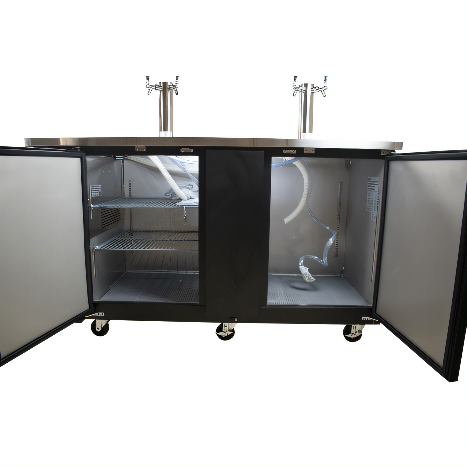 - Two stainless-steel draft towers with (2) faucets for smooth, consistent pours.