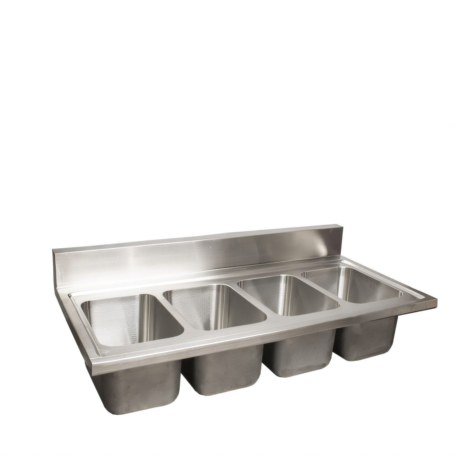 Drop-In Sink, (4) compartment, 48"W x 24"D, 4" OC, 5" riser, 18/304 stainless steel, (4) BKDR-4, traditional top mount, deep drawn construction, fits CST cabinet, NSF