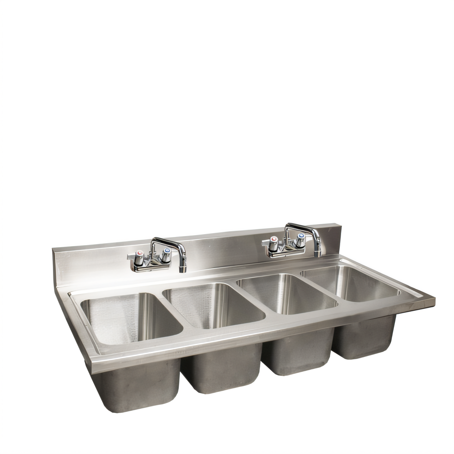 Drop-In Sink, (4) compartment, 48"W x 24"D, 4" OC, 5" riser, 18/304 stainless steel, BKF-W2-10-G, (4) BKDR-4, traditional top mount, deep drawn construction, fits CST cabinet, NSF