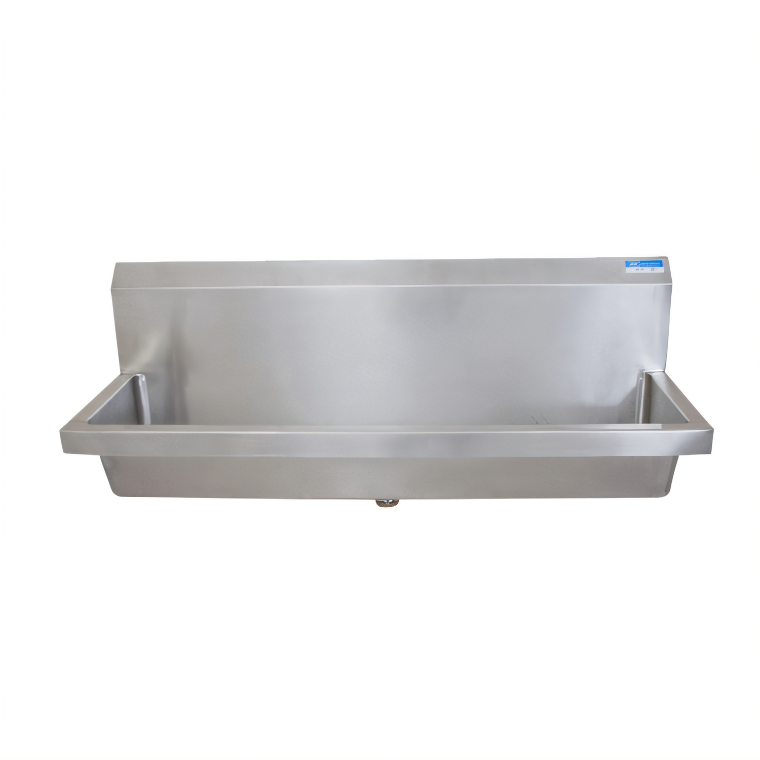 BK Resources MSU-72 stainless steel 72" wall-mount urinal with sloping backsplash, included brackets & drain for durable, hygienic performance