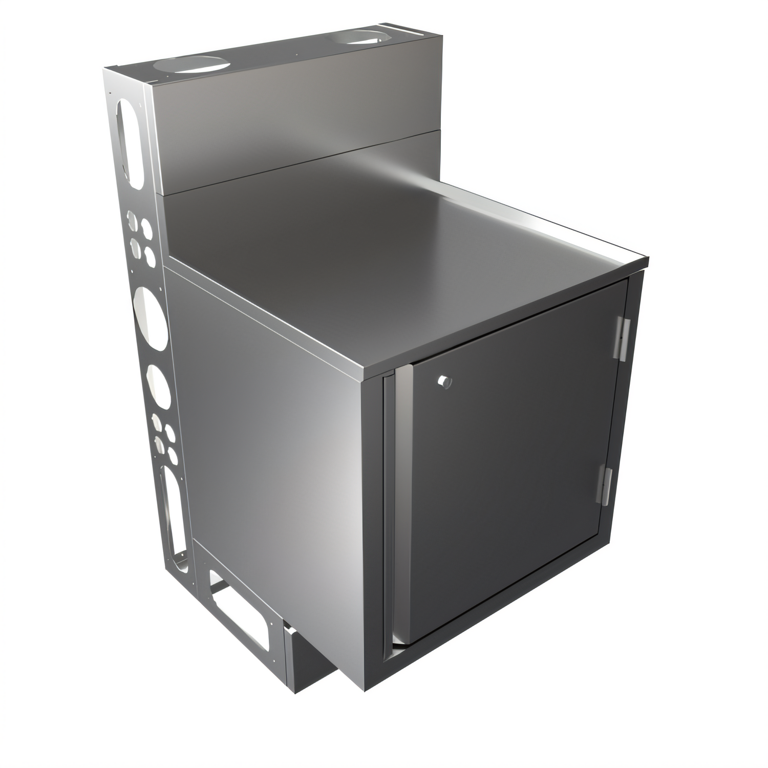 - Lockable hinged door keeps premium bottles, tools, or POS devices secure.