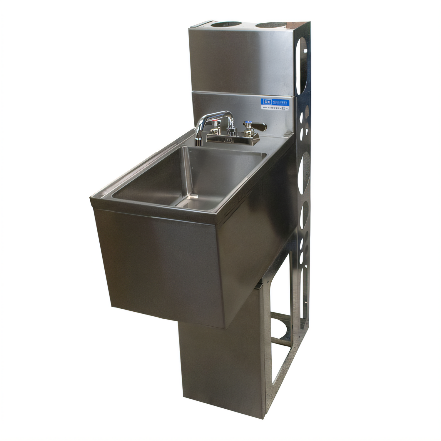 BK Resources • Model UBDW-18-1014HS12-P-G • Includes BKF-W2-6-G FaucetPurpose-built for busy bars and compact workstations, this NSF-listed dump sink delivers maximum durability and sanitary performance in the smallest possible footprint. A welded 10" × 14" × 6" bowl, die-wall construction and lead-free splash-mount faucet give you a rugged, ready-to-install solution for rinsing and glass disposal.