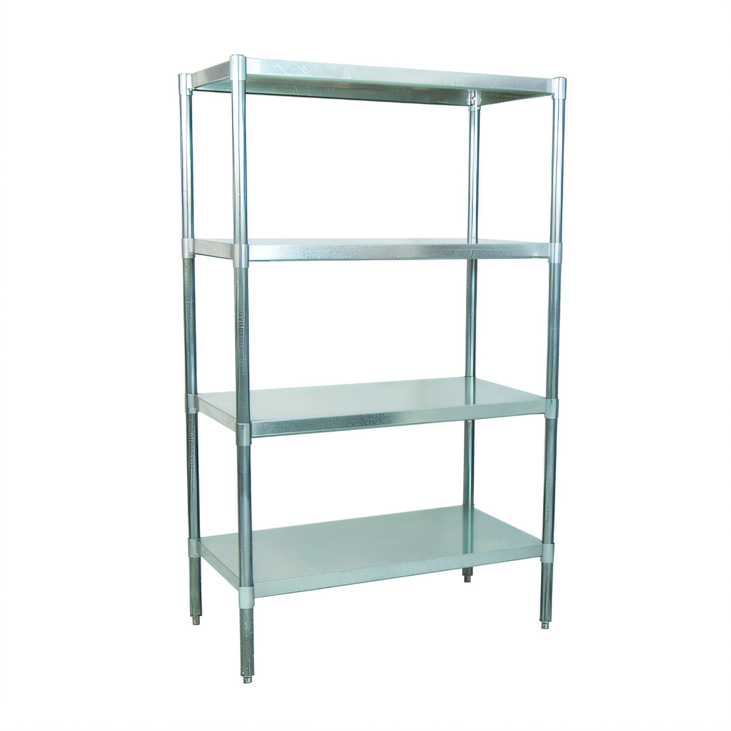 Dry Storage Shelving Unit, 67"W x 24"D x 72"H, (4) adjustable shelves, galvanized shelves & legs, with adjustable bullet feet