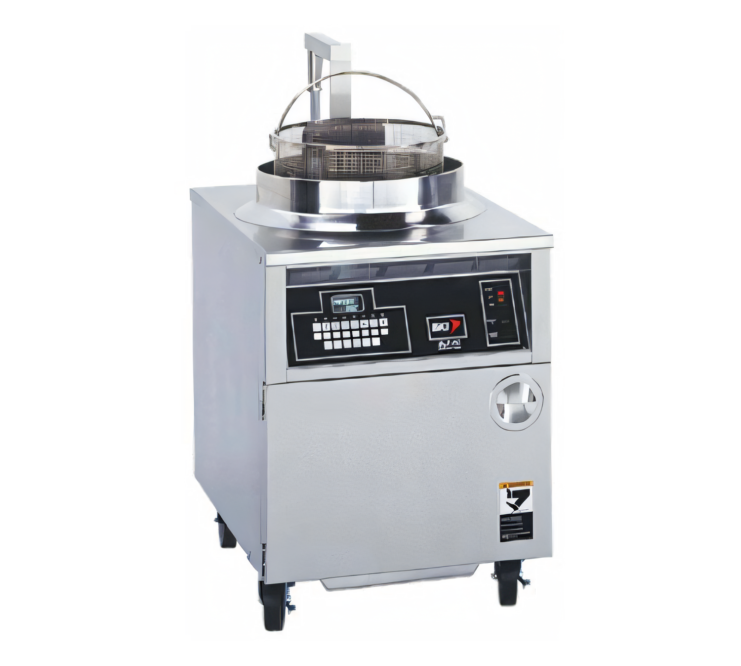 Fryer, electric, extra large volume, automatic lift, computer controls, holds 18 lb. product, 75 lb. oil capacity, quick disconnect filter system, round well, built-in cold zone, stainless steel exterior, 5" casters, cETLus, ETL Sanitation