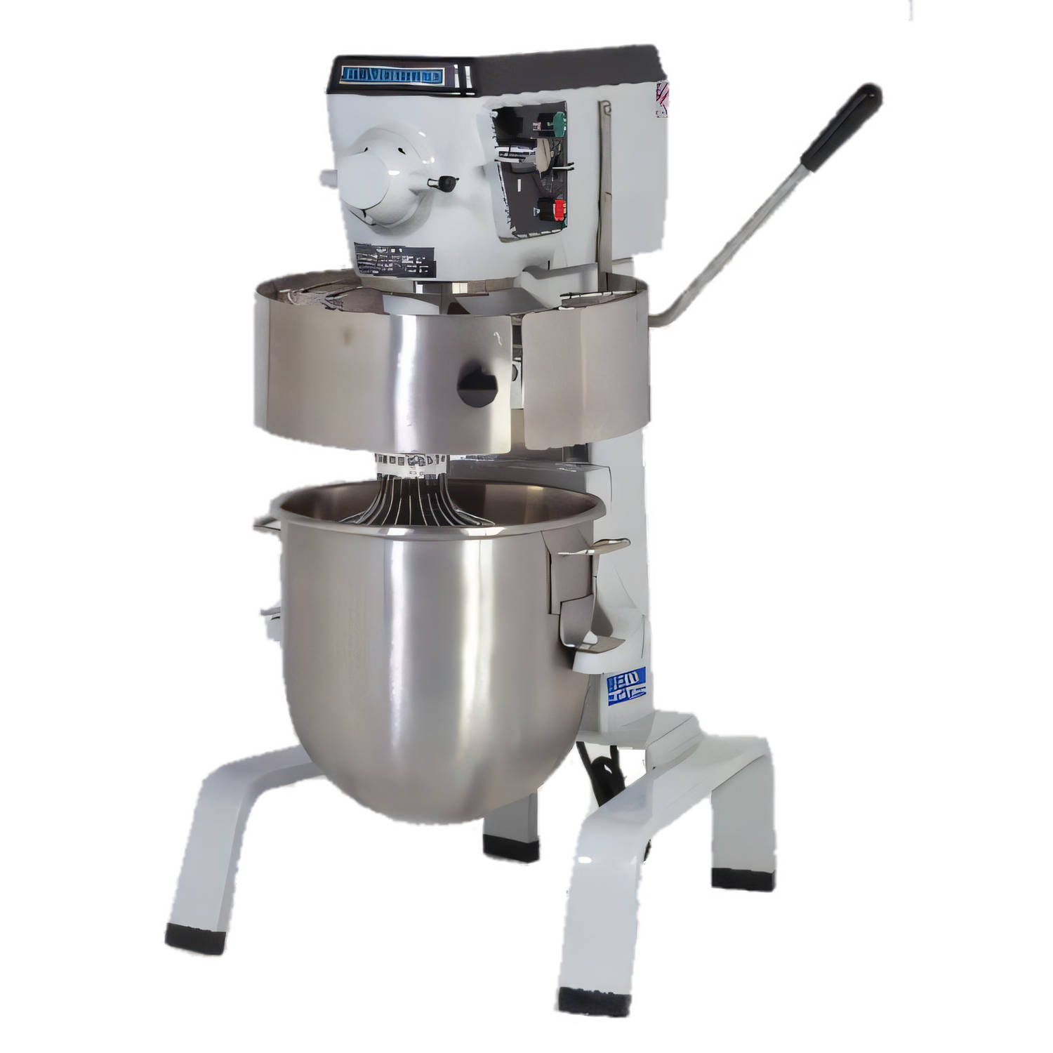 Planetary Mixer, floor model, 30 quart bowl capacity, 3-speed gear driven transmission, control, 15-minute adjustable timer & speed shift controls, type "A" bowl guard, #12 attachment hub, spring-assisted handle, includes: stainless steel bowl, wire whip & batter beater, stainless steel, 3/4 HP