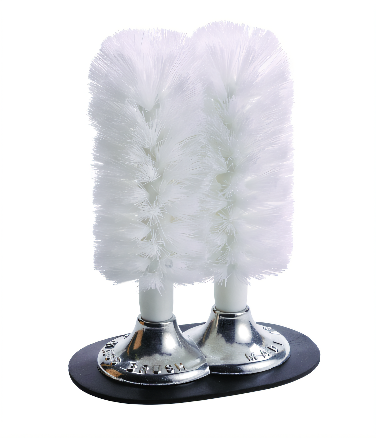 Glass Brush, 8-1/2", double head, suction base, white nylon brushes