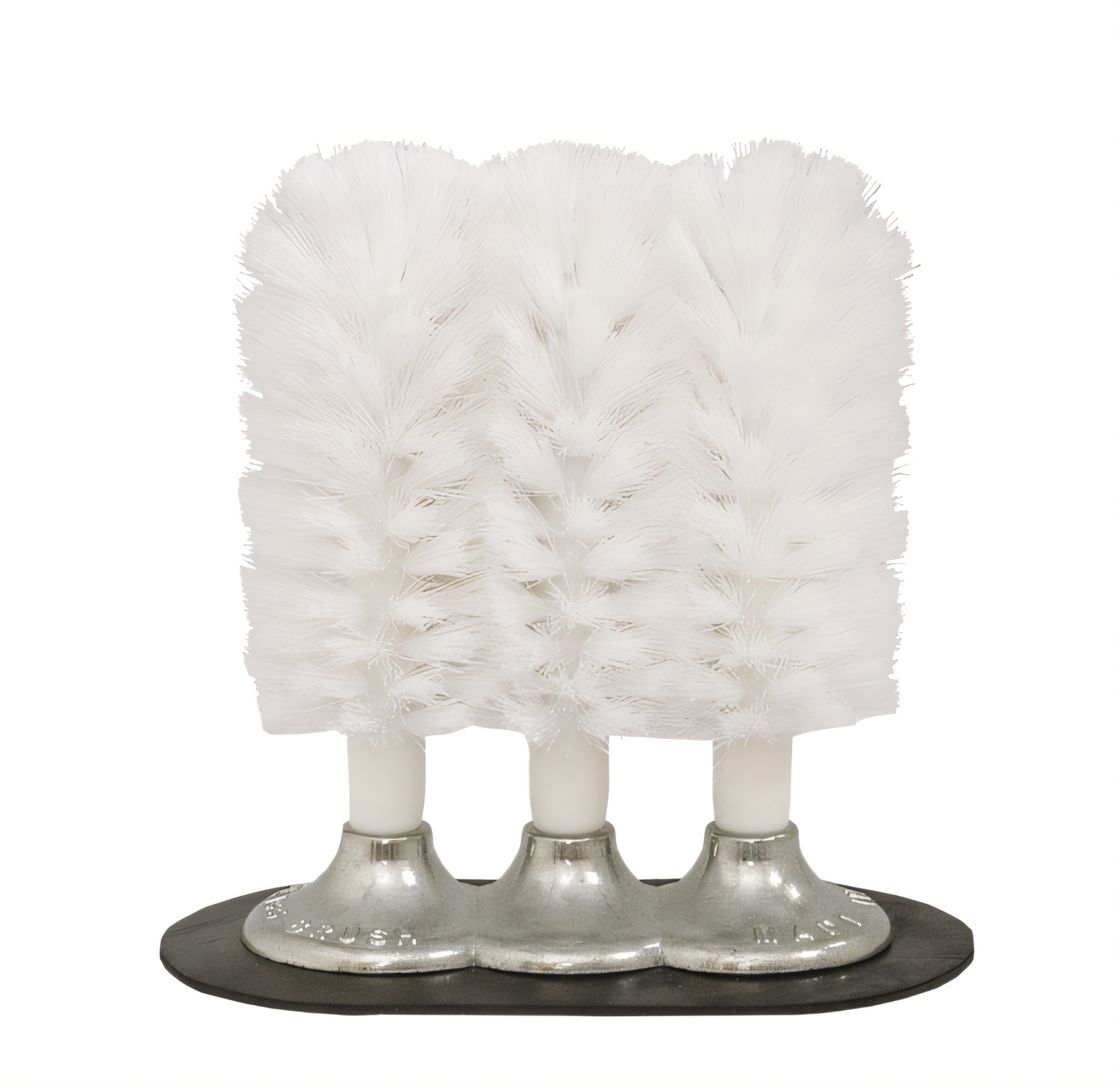 Glass Brush, 8-1/2", triple head, suction base, white nylon brushes