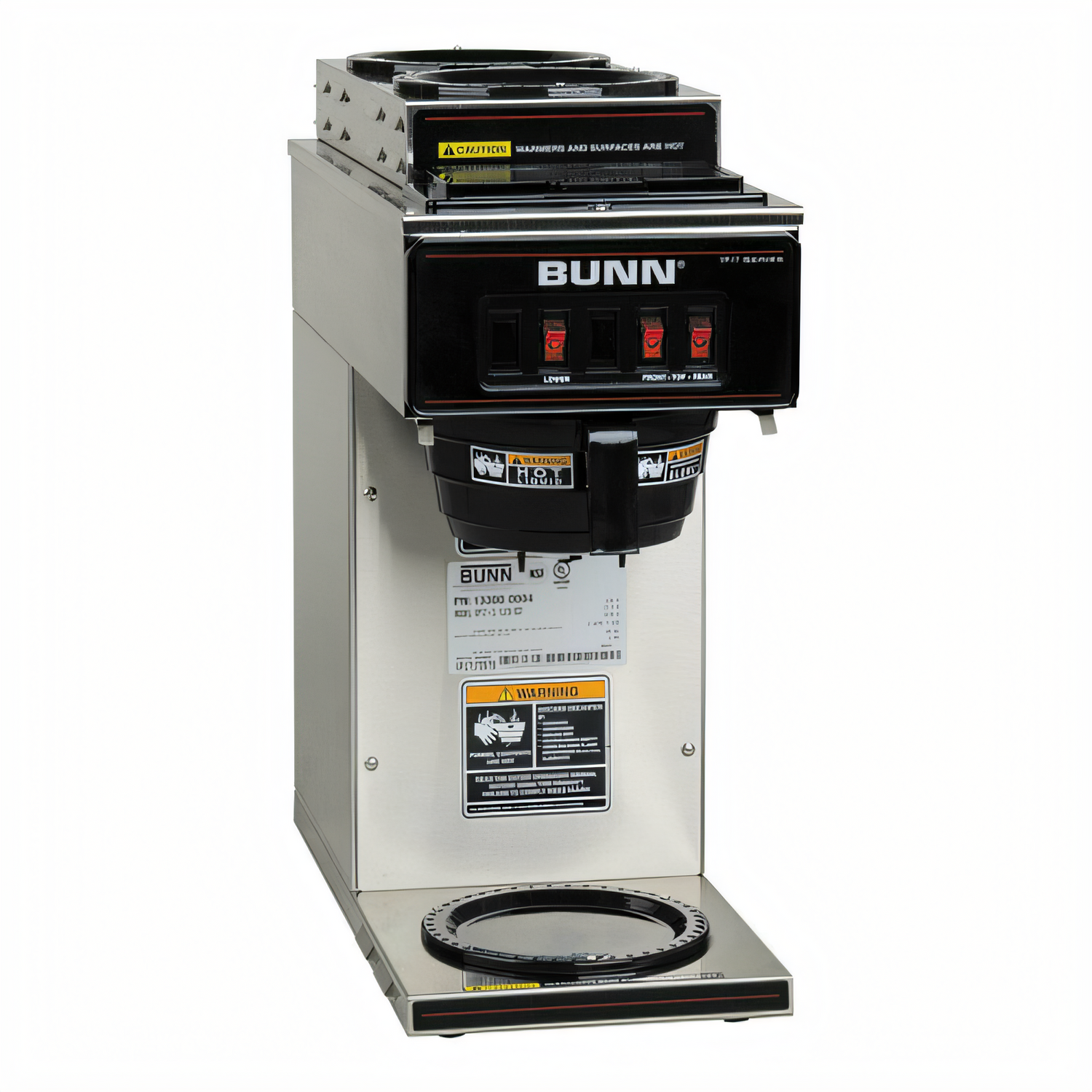 13300.0004 VP17-3 Coffee Maker,pourover type, brews 3.8 gallons per hour capacity, (1) lower & (2) upper warmer, plastic funnel, stainless decor, 120v/60/1-ph, 13.9 amp, 1670 watts, NEMA 5-15P, cord attached, UL, NSF