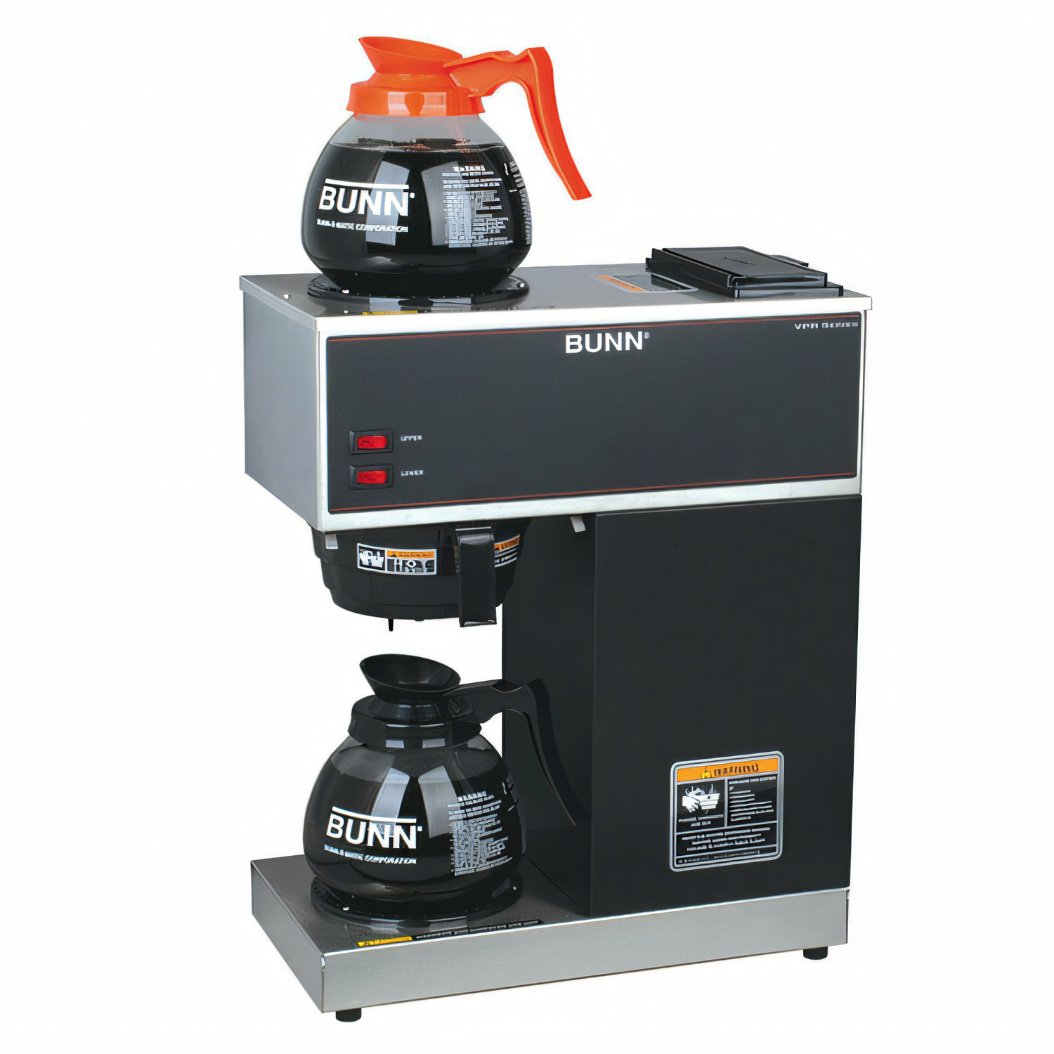 33200.0015 VPR Coffee Brewer, pourover type, brews 3.8 gallons per hour capacity, (1) lower & upper warmer, plastic funnel, black, includes: 2 glass decanters with black handles, 120v/60/1-ph, 1575w, 13.1 amps, NEMA 5-15P, cord attached, UL, NSF
