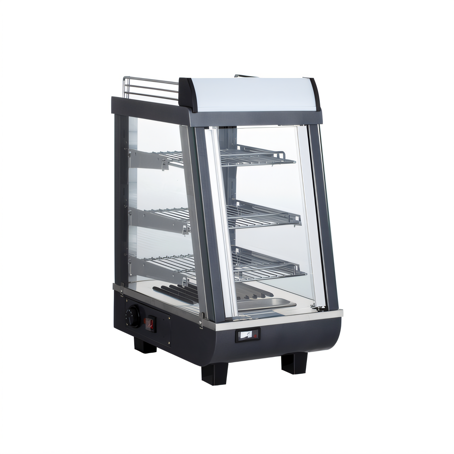 Heated Display Merchandiser, 19"W, countertop, includes: (3) chrome plated adjustable shelves, (2) hinged glass doors, LED interior lighting, illuminated display panel, adjustable thermostat from 85°F to 195°F, metal construction, 800 watts, 7.6 amps, 110-120v/60/1-ph, cETLus, ETL-Sanitation (ships by freight only, UPS small package is not available) (1year warranty) (Qty Break = 1 set)