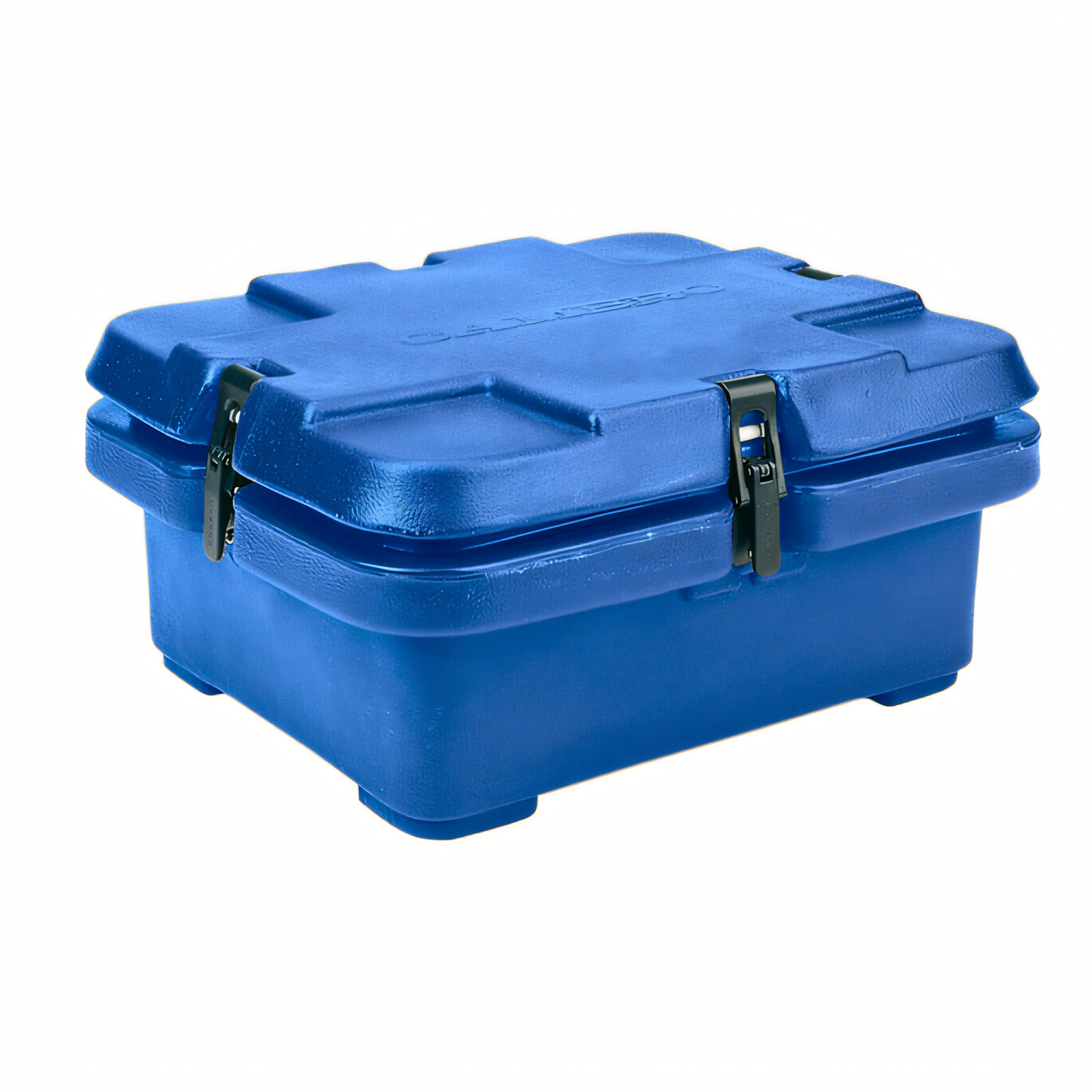 Insulated Cambro Camcarrier for half-size pans — durable polyethylene, foam insulation, dishwasher-safe, NSF-certified, made in USA.