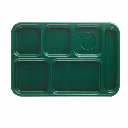 Cambro 6-compartment Budget Tray 10"x14.5" — durable, scratch-resistant ABS, textured, dishwasher-safe, full-portion school tray, Sherwood green.