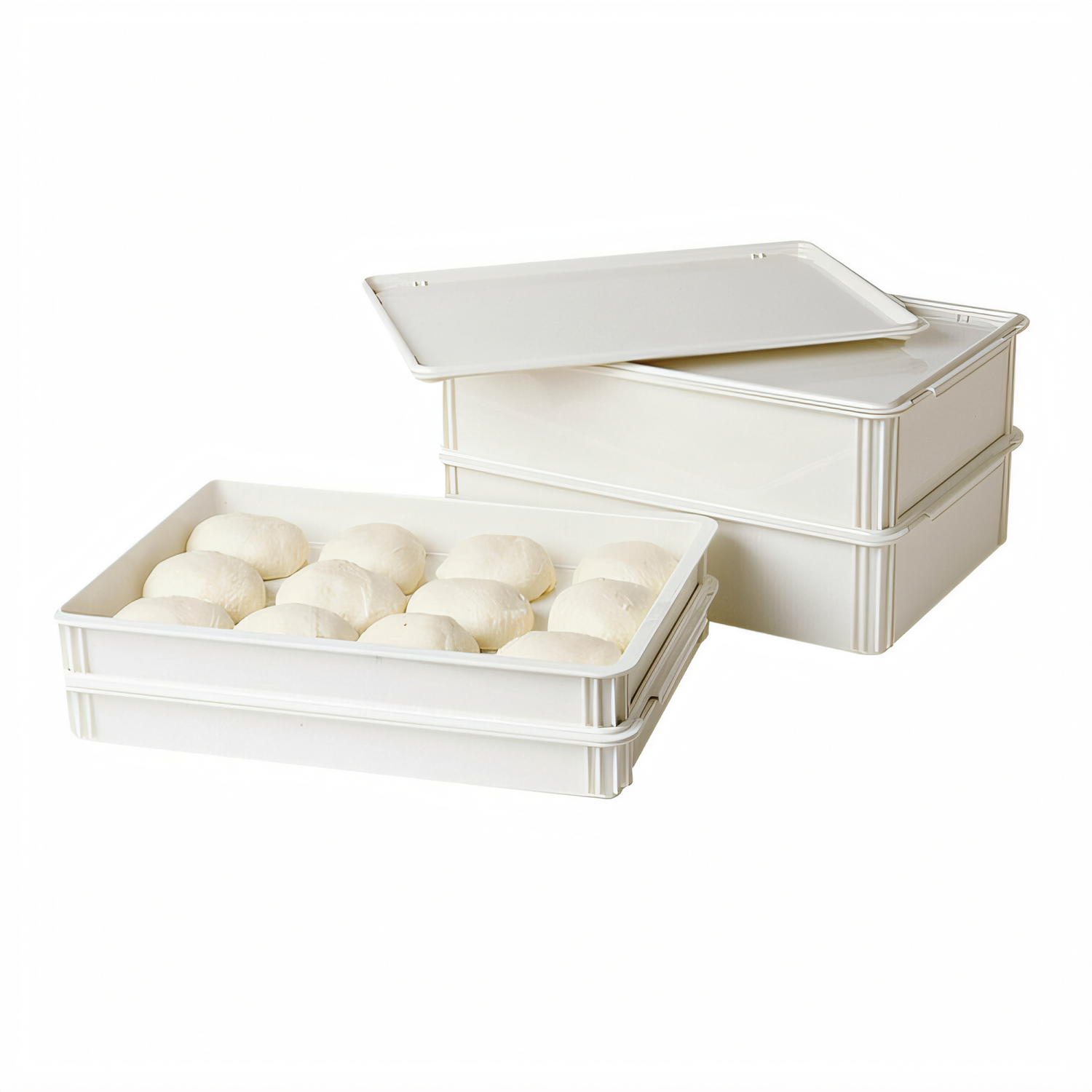 Camwear® Pizza Dough Box, 26"L x 18"W x 6"D, rounded edges, dishwasher safe, break resistant, polycarbonate, white, NSF, Made in USA