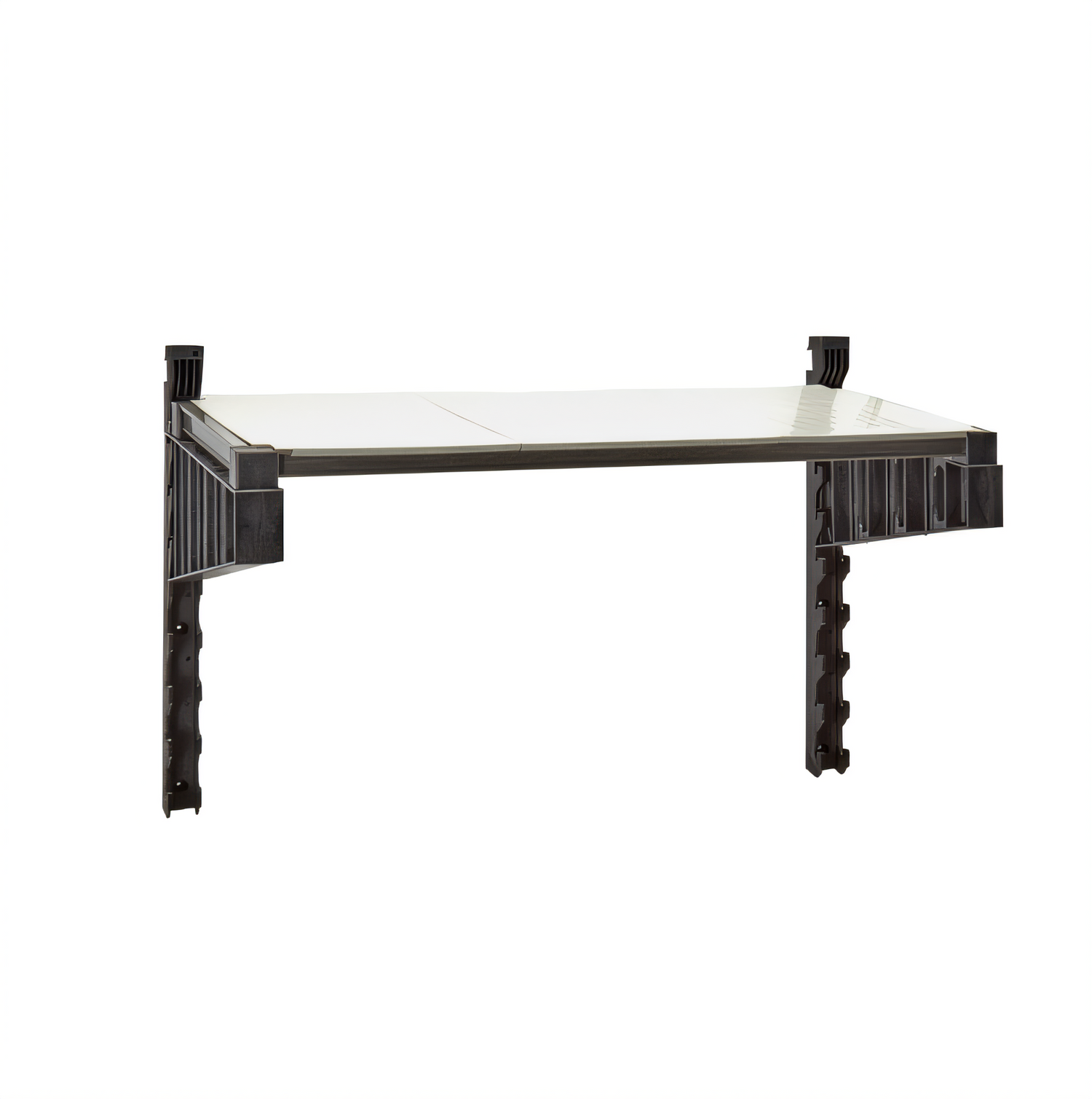 Camshelving® Elevation Series Wall Shelving Shelf Kit, 14" x 42", includes (1) open shelf frame, (2) straight universal shelf brackets, (2) 15" uprights, solid shelf plates with CamGuard® antimicrobial protection, brushed graphite, NSF