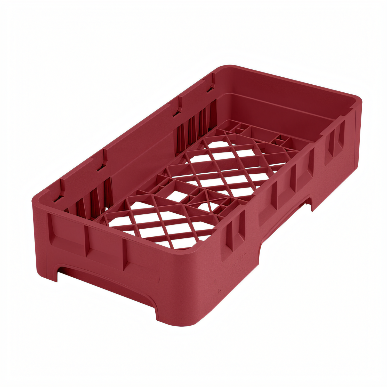 Camrack® Base Rack, half size, (1) compartment, 19-3/4" x 9-7/8" inside rack height (3-1/4" inside & stack height), polypropylene, cranberry, NSF, Made in USA