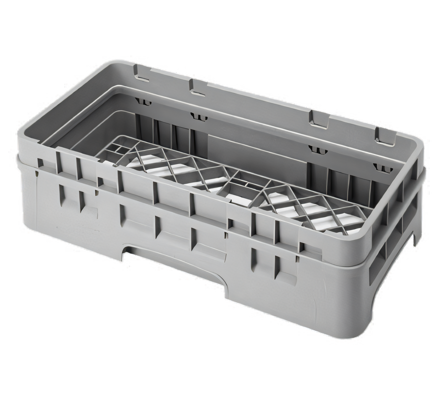 Cambro Camrack® half-size base rack with soft gray extender—durable polypropylene, NSF, 19.75"x9.88", made in USA for undercounter dishwashers
