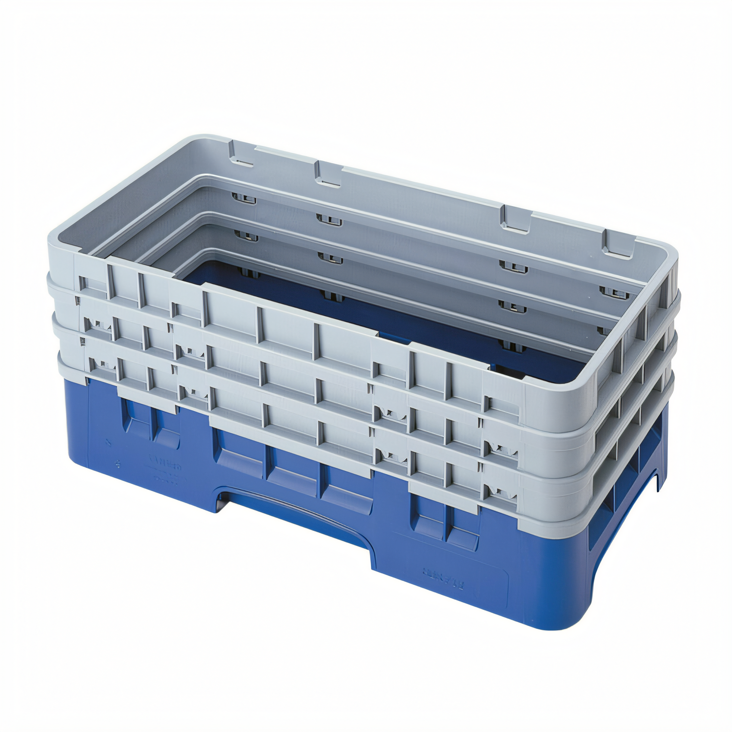 Camrack® Base Rack, with (3) soft gray extenders, half size, (1) compartment, 19-3/4" x 9-7/8", 8-1/8" inside rack height (7-1/2" inside stack height), polypropylene, navy blue, NSF, Made in USA