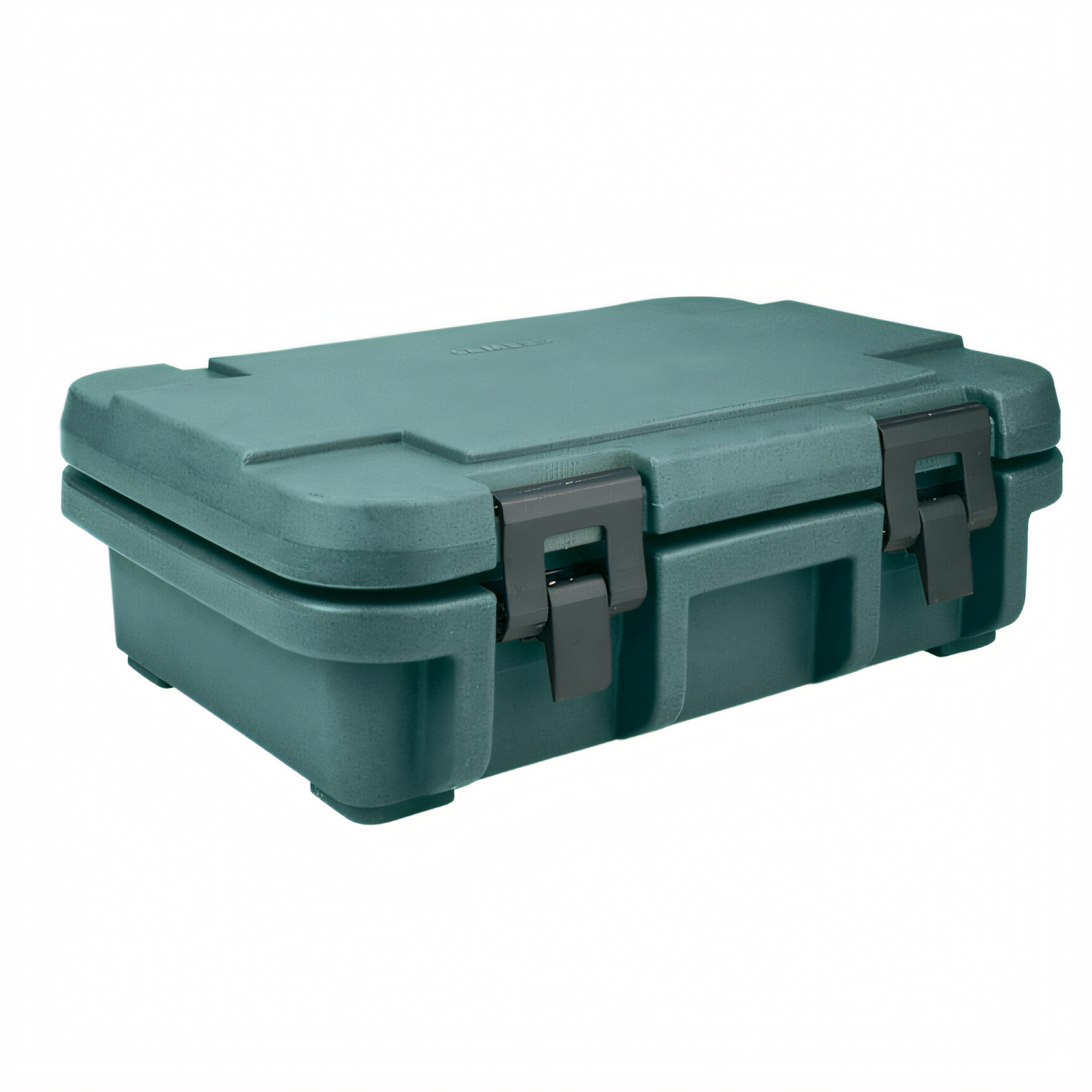 Ultra Pan Carriers®, top loading, holds (1) GN full size or fractional pans up to 4" deep, approximate 12.3 qt. capacity, retention: hot for up to 4 hours (185.7° - 167.1° F) & cold for up to 4 hours (33.5° - 37.1° F), (4) E-Z grip molded-in handles, (4) nylon over-center latches, removable gasket, self venting design, stackable with Camcarrier®, dishwasher safe, scratch resistant textured exterior, one-piece seamless, double wall, polyurethane foam insulation, polyethylene construction, granite green, NSF, Made in USA
