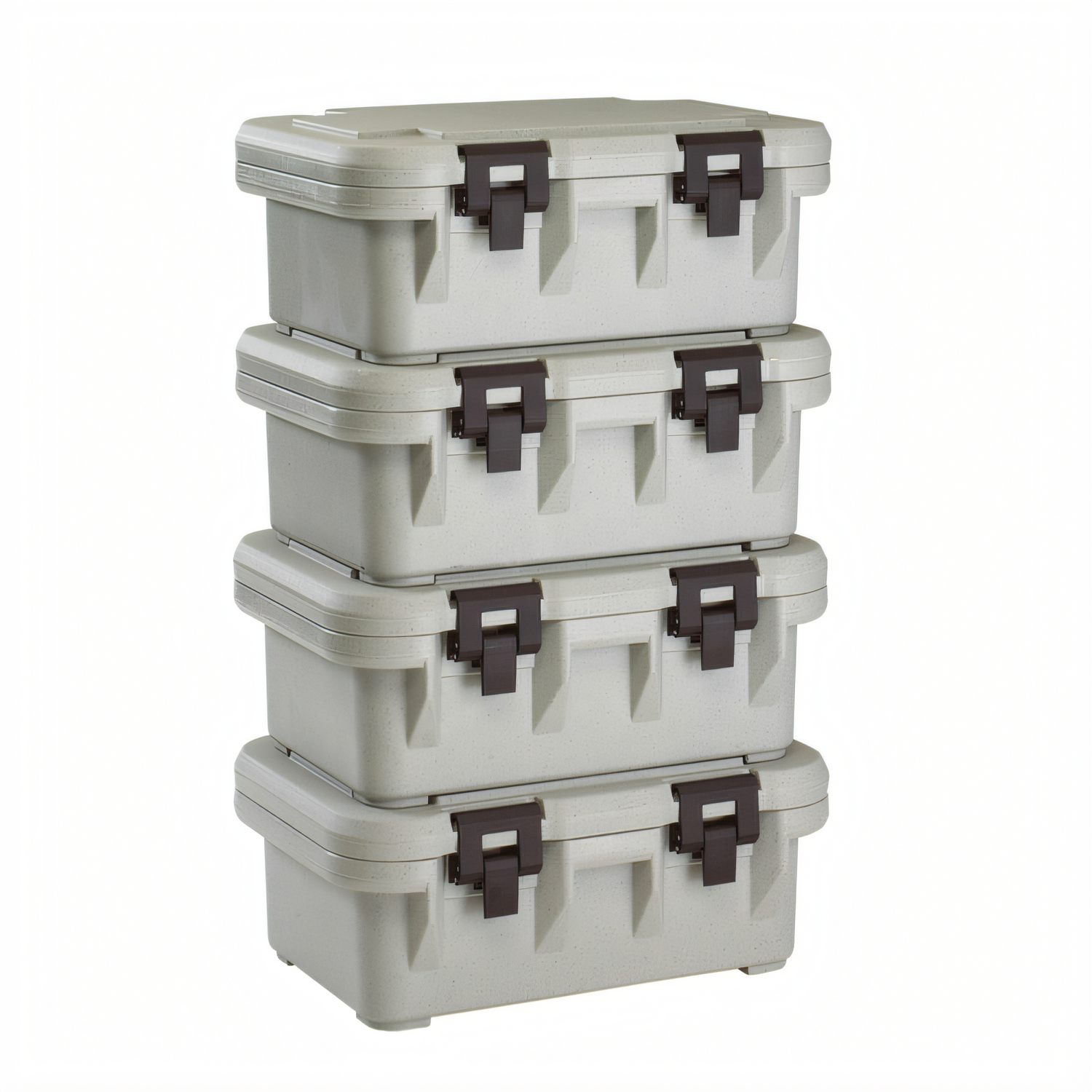 S-Series Ultra Pan Carriers®, top loading, holds (1) GN full size or fractional pans up to 6" deep, approximate capacity 20 qt., retention: hot for up to 4 hours (190° - 179° F) & cold for up to 4 hours (33.9° - 35.8° F), (4) EZ grip molded-in handles, (4) nylon latches, built-in gasket, self venting design, stackable with MPC Camcarriers and UPC Ultra Pan Carriers, dishwasher safe, polyurethane foam insulation, polypropylene construction, speckled gray, NSF, Made in USA