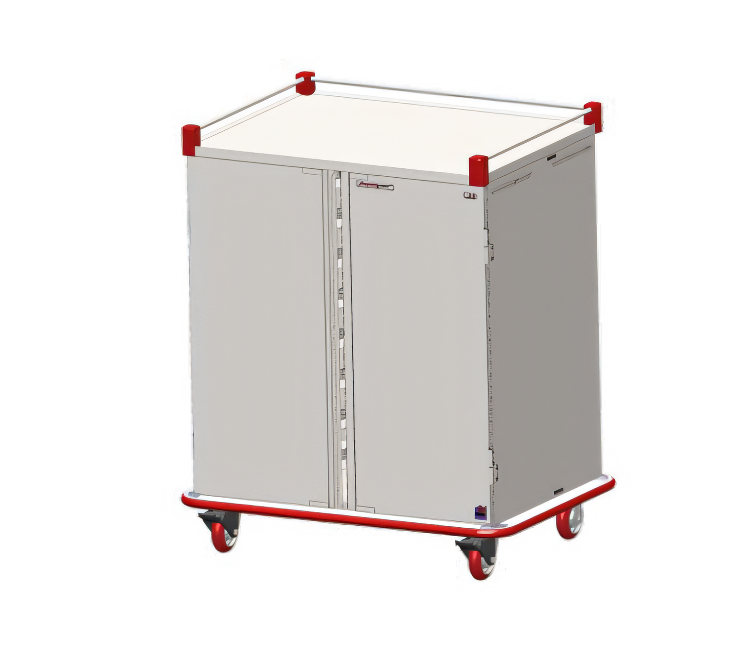 Performance Patient Tray Cart, stainless steel, wrap-around bumper, floor drain with plug & leash, 3-sided top rail, two doors, one tray per slide; ultra-quiet construction; adjustable tray slides accept 12"x19", 12"x20", 14"x18", 15"x20" Trays; capacity 10 trays