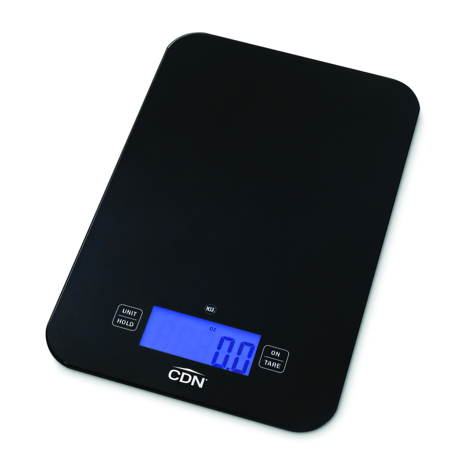 CDN SD1502-BK digital portion scale, 15lb/7kg capacity, tempered glass platform, tare/data hold, backlit NSF-approved compact design.
