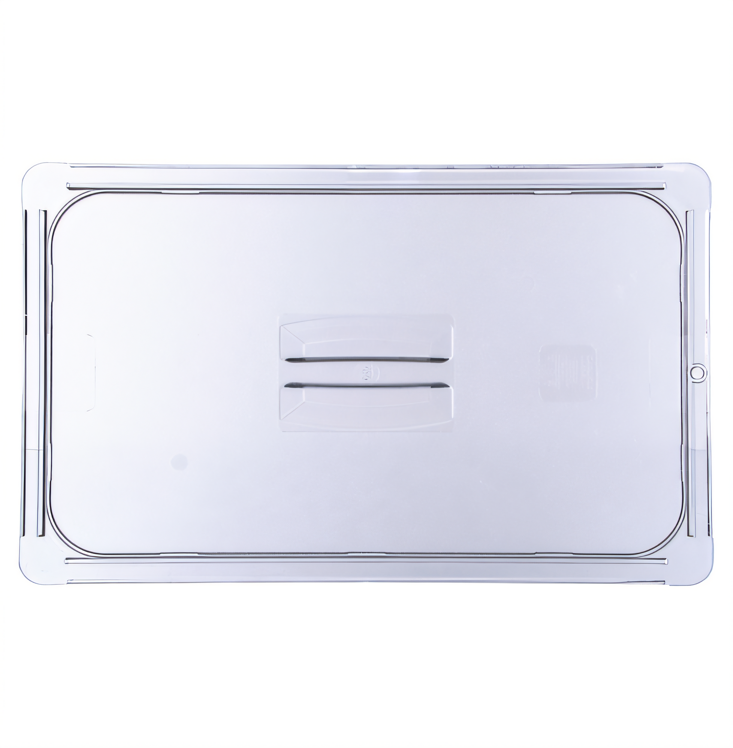 CFS Brands StorPlus™ clear polycarbonate lid for 1/1 food pan — handled, stackable, dishwasher-safe, -40° to 212°F, NSF, USA-made.