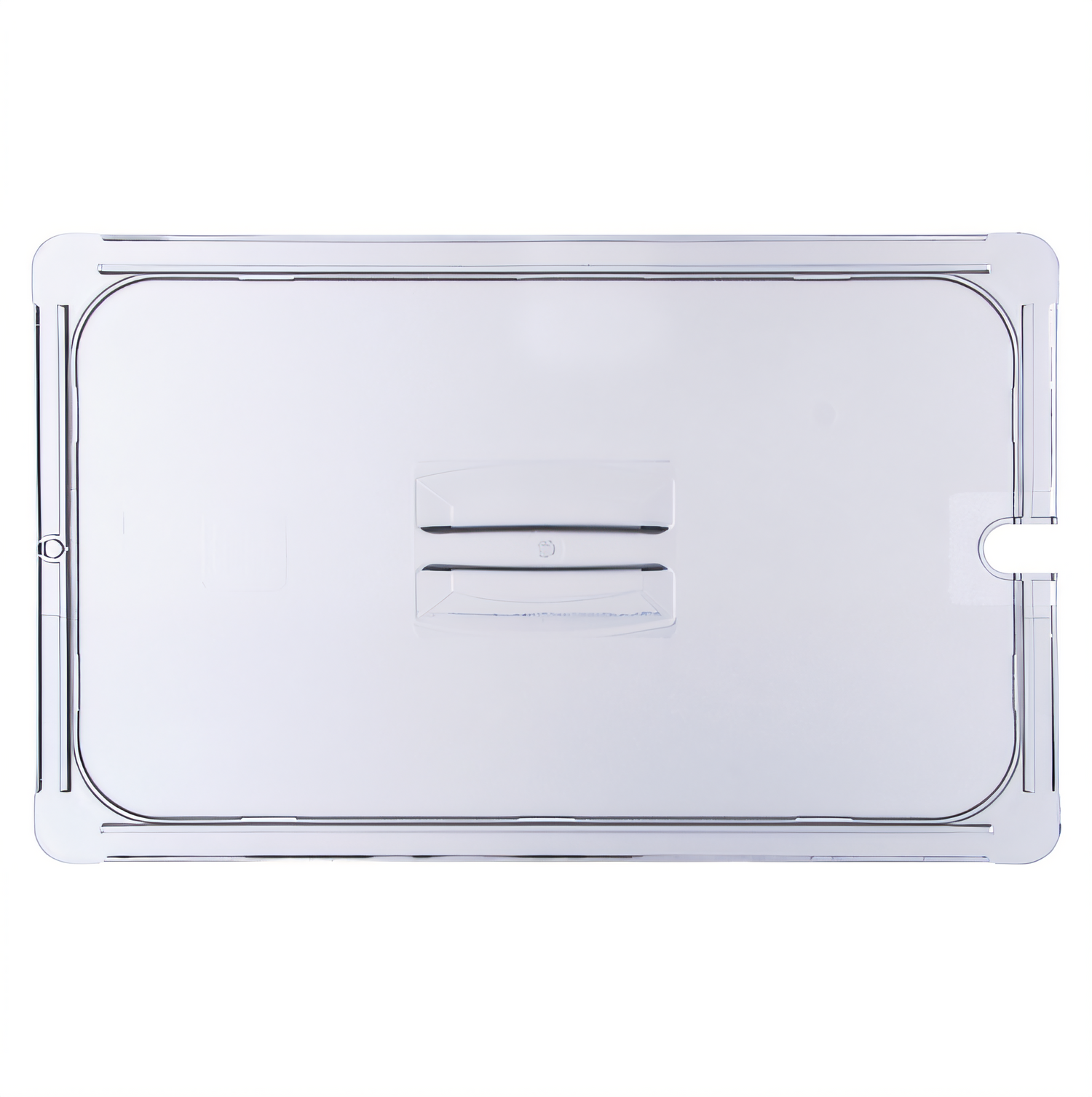 Clear StorPlus™ polycarbonate lid for 1/1 full-size pans; handled, stackable, dishwasher-safe, -40° to 212°F, NSF, Made in USA.